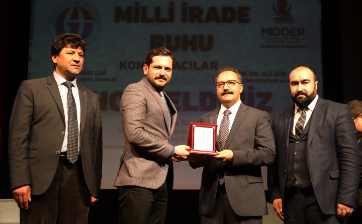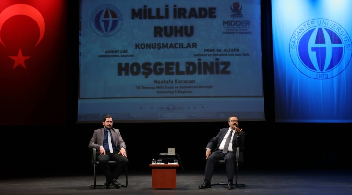 15 Temmuz Milli İrade ve Demokrasi Derneği tarafından hazırlanan ve GAÜN Rektörü Prof. Dr. Ali Gür ile 15 Temmuz Milli İrade ve Demokrasi Derneği (MİDDER) Genel Başkanı Serhat Çağ’ın konuşmacı olarak katıldığı ”Milli İrade Ruhu” konulu söyleşide, coşku ve duygu dolu anlar yaşandı.