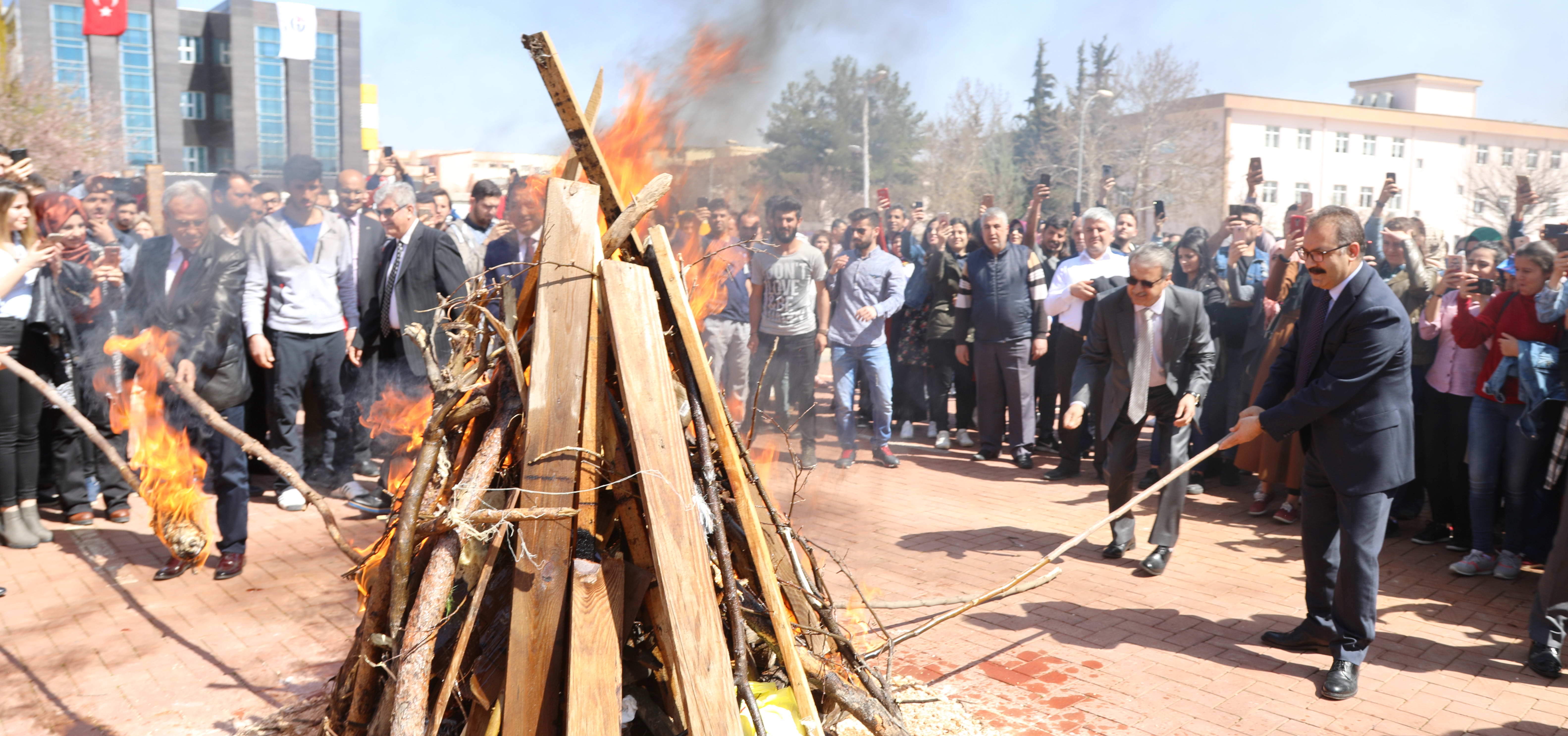 Gaziantep Üniversitesi (GAÜN) Atatürk Kültür Sahnesi önünde gerçekleştirilen törende baharın müjdecisi “Nevruz” coşkuyla kutlandı. GAÜN Rektörü Prof. Dr. Ali Gür ve protokol üyelerinin Nevruz ateşini yakması ve bereket tepsisini ateşe atması sonrasında Rektör Prof. Dr. Gür, öğrencilerle birlikte halay çekip, baharın gelişini kutlanarak, Nevruz ateşinin üzerinden atlanıldı.