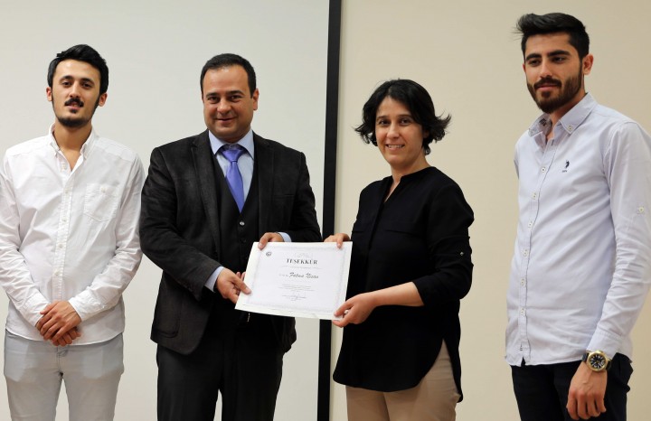 Söyleşinin sonunda GAÜN İletişim Fakültesi Dekan Yardımcısı Doç. Dr. Fuat Ustakara, birikimlerine bağlı olarak öğrencileri bilgilendirdiği için Dr. Öğretim Üyesi Fatma Nisan’a teşekkür belgesi takdim etti.