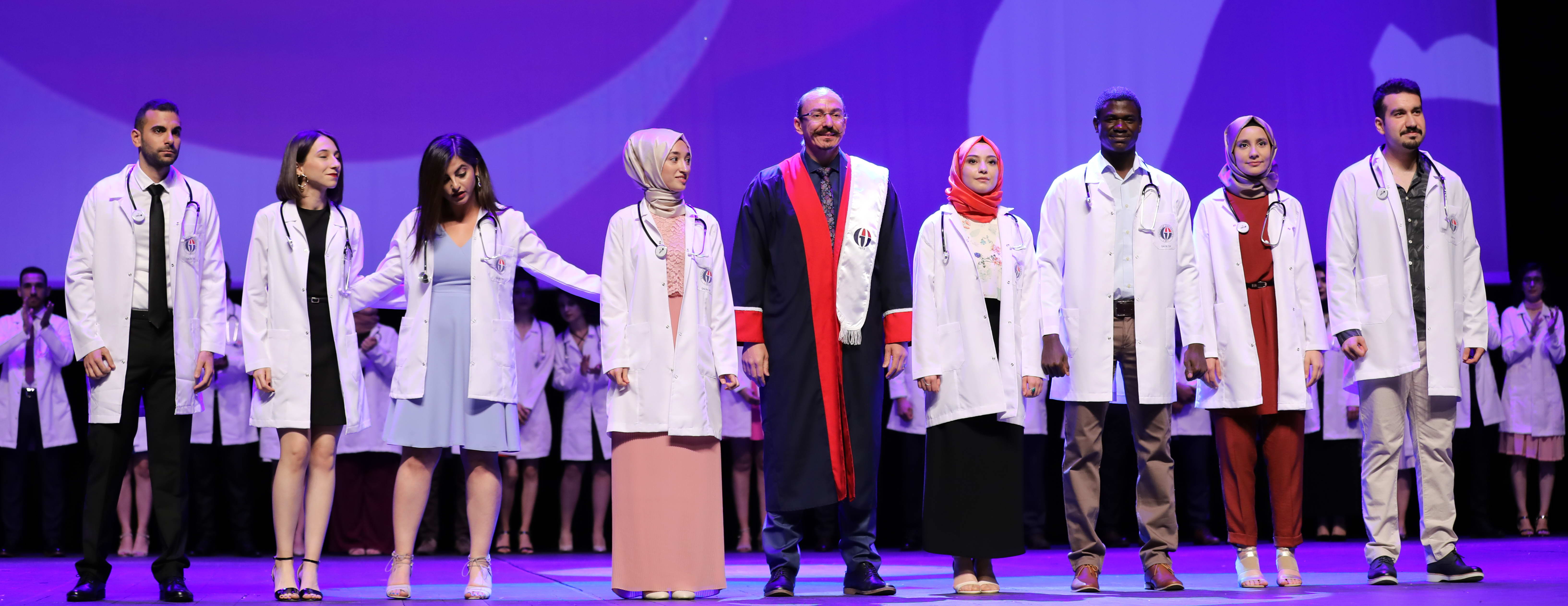 Gaziantep Üniversitesi (GAÜN) Tıp Fakültesi Türkçe ve İngilizce Tıp, üçüncü dönem öğrencileri “Beyaz Önlük Giyme Töreni” GAÜN Mavera Kongre ve Sanat Merkezinde gerçekleşti. Tıp Fakültesi’nde 3 yıllık temel eğitimlerini tamamlayan 320 öğrenciye öğretim üyeleri tarafından önlük giydirilip, stetoskopları verildi.