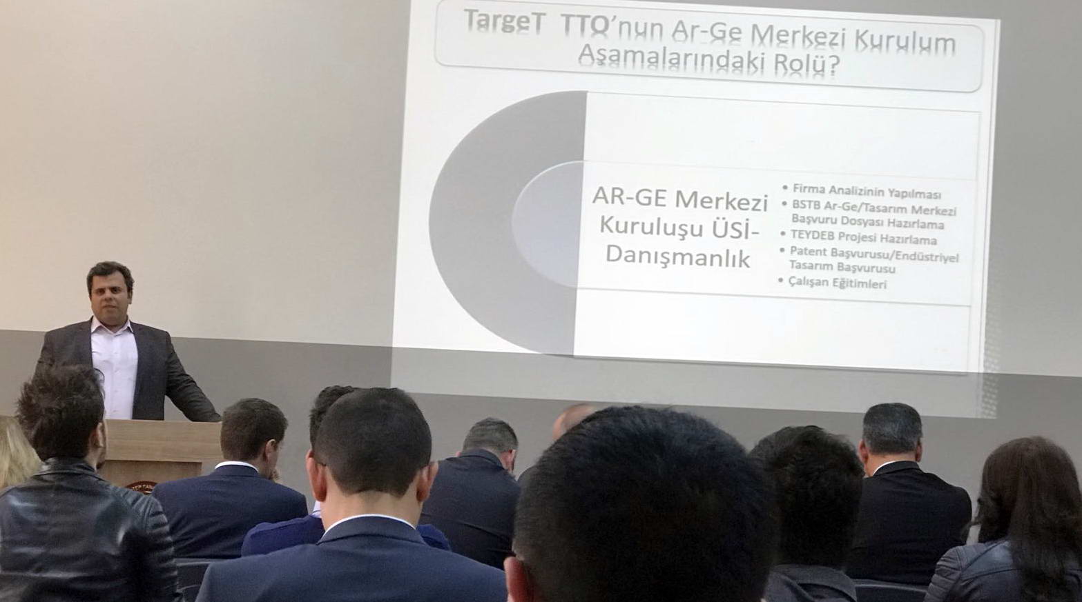 ARGE ve Tasarım Merkezlerinin rolü hakkında bilgiler aktaran Gaziantep Üniversitesi Teknoloji Transfer Ofisi Genel Müdür Yardımcısı Başar Kılıçparlar “ARGE ve Tasarım Merkezlerinin kurulumu sırasında başvuruların hazırlanması ve bu konudaki yapılacak eğitimler hakkında bilgi birikiminin firmalara ve sanayiye aktarılması konusundaki işbirliğini önemsiyoruz” şeklinde konuştu.