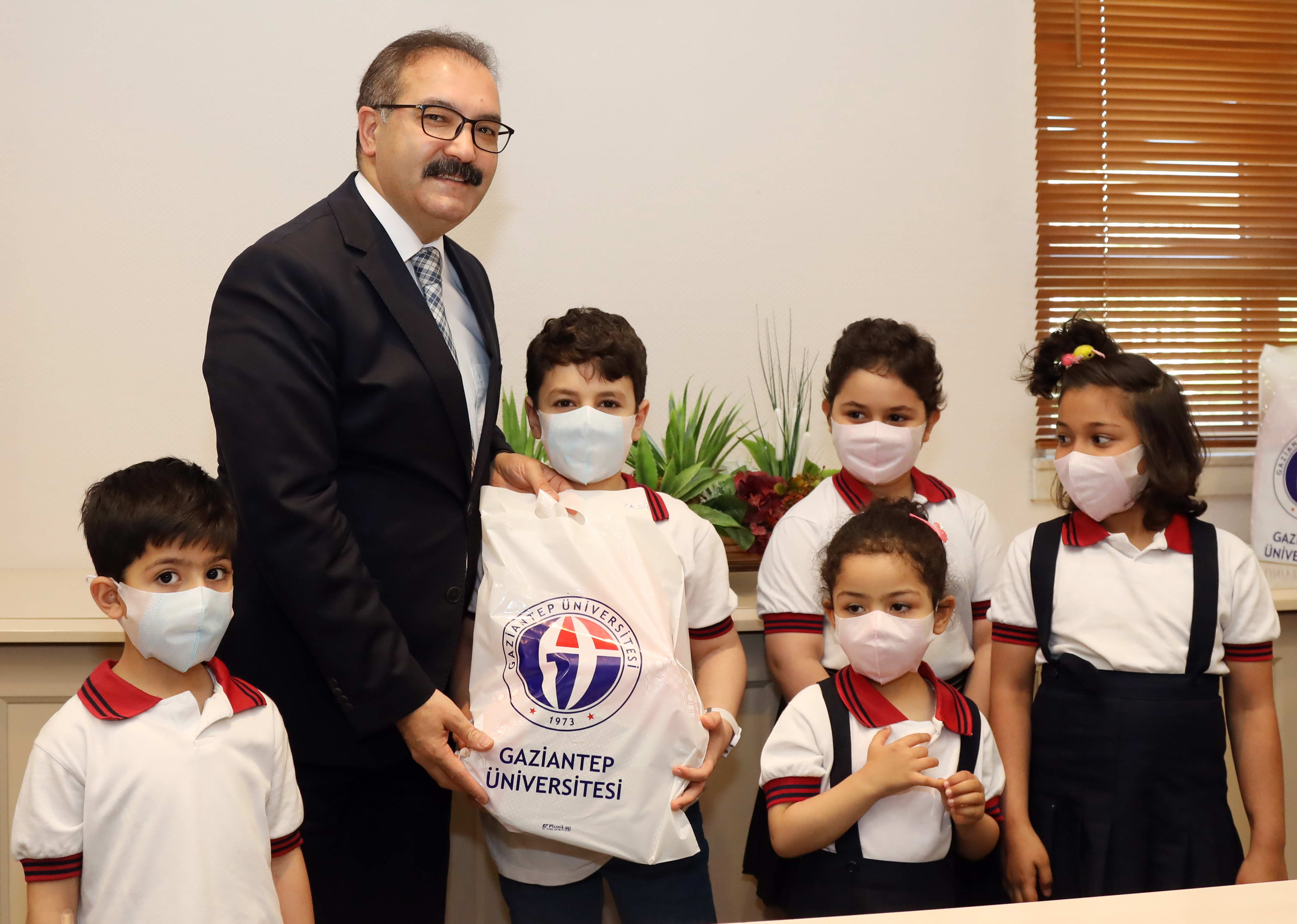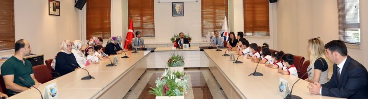 GAÜN Onkoloji Hastanesinde tedavi görerek başarılı olan öğrencilerin Rektör Prof. Dr. Ali Gür’ü ziyaret ettiği toplantıya; Şahinbey Araştırma ve Uygulama Hastanesi Başhekimi Doç. Dr. Suat Zengin, Onkoloji Hastanesi Başhekim Yardımcısı Yrd. Doç. Dr. Handan Haydaroğlu Şahin, Pediatrik Hematoloji Bilim Dalı Başkanı Prof. Dr. Sinan Akbayram, Onkoloji Hastanesi Eğitmenleri Nesibe Gerek, Ali Sinan ve çocukların anne babaları katıldı.