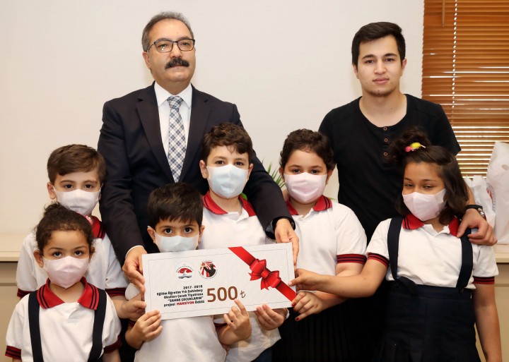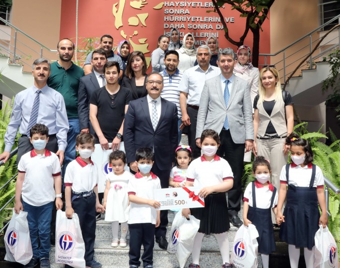 GAÜN Rektörlük Senato toplantı salonunda Rektör Prof. Dr. Ali Gür ile bir araya gelen GAÜN Onkoloji Hastanesinde tedavi gören başarılı çocuklar, Rektör Prof. Dr. Ali Gür’e aldıkları ödülü Filistin’deki çocukların tedavisi için bağışladıklarını belirtmeleri üzerine oldukça duygulu anlar yaşandı. Rektör Prof. Dr. Gür, kendisinin de bu ödüle katkı sağlayacağını belirterek, GAÜN Onkoloji Hastanesi’nde tedavi gören çocukların bu duyarlı davranışının birçok kişiye örnek olması gerektiğini belirtti.