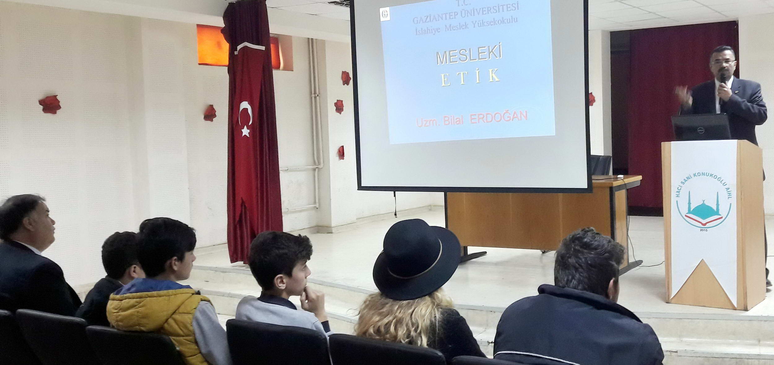 Gaziantep Üniversitesi (GAÜN) İslahiye Meslek Yüksekokulu tarafından İslahiye’deki liselerle yapılan eğitim ve koordinasyon protokolü çerçevesinde İslahiye HSK Anadolu İmam Hatip Lisesinde “Etik ve İmam Hatip” konulu konferans verildi.