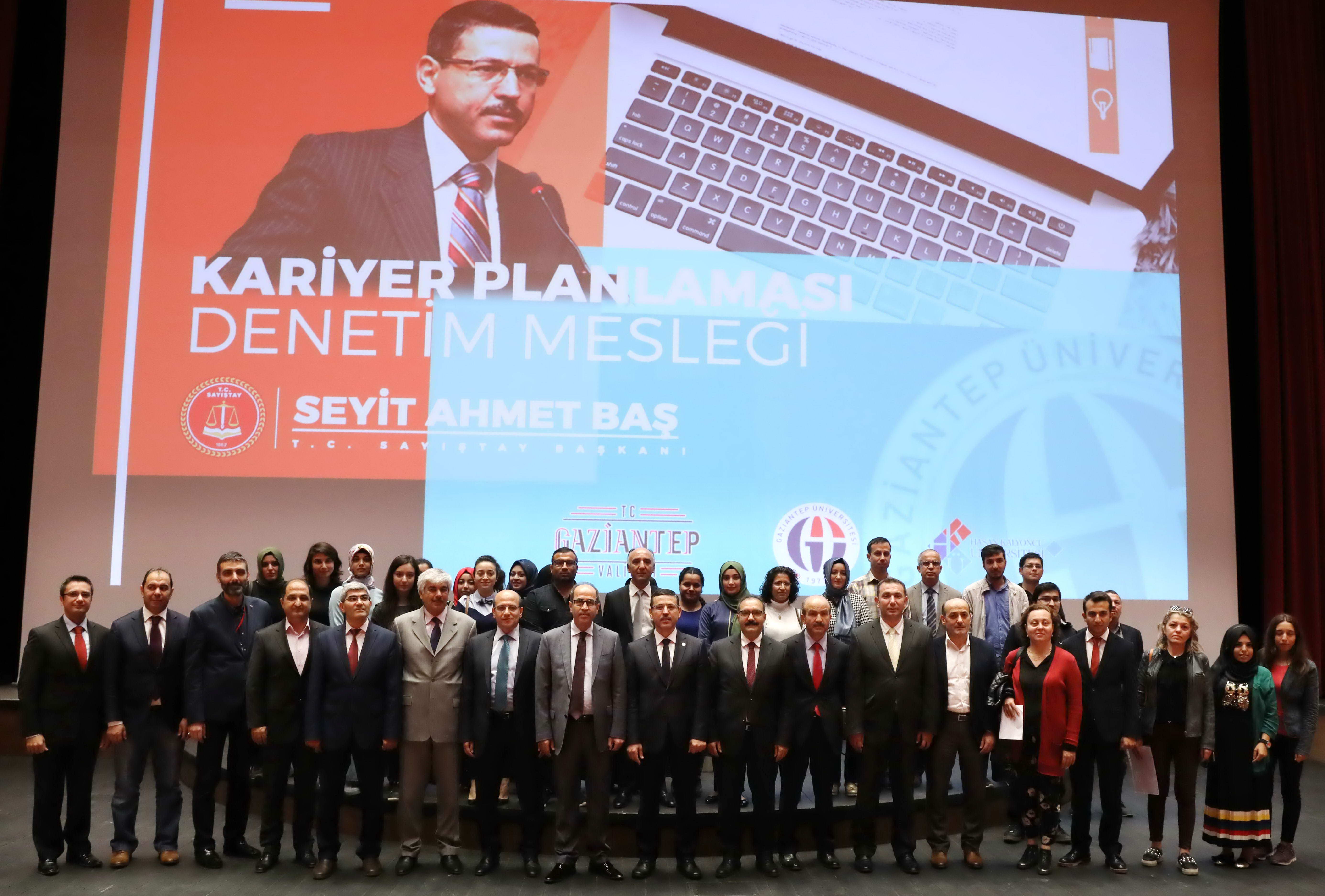 Gaziantep Valiliği, Gaziantep Üniversitesi (GAÜN) ve Hasan Kalyoncu Üniversitesi işbirliğinde hazırlanan ve T.C. Sayıştay Başkanı Seyit Ahmet Baş tarafından gerçekleştirilen “Kariyer Planlaması Denetim Mesleği” konulu söyleşi, salonu dolduran çok sayıda öğretim elamanı ve öğrencinin katılımıyla gerçekleşti. Konferansa katılmak için Gaziantep Üniversitesine gelen Sayıştay Başkanı Seyit Ahmet Baş ve Gaziantep Valisi Ali Yerlikaya konferans öncesi Rektör Prof. Dr. Ali Gür’ü makamında…