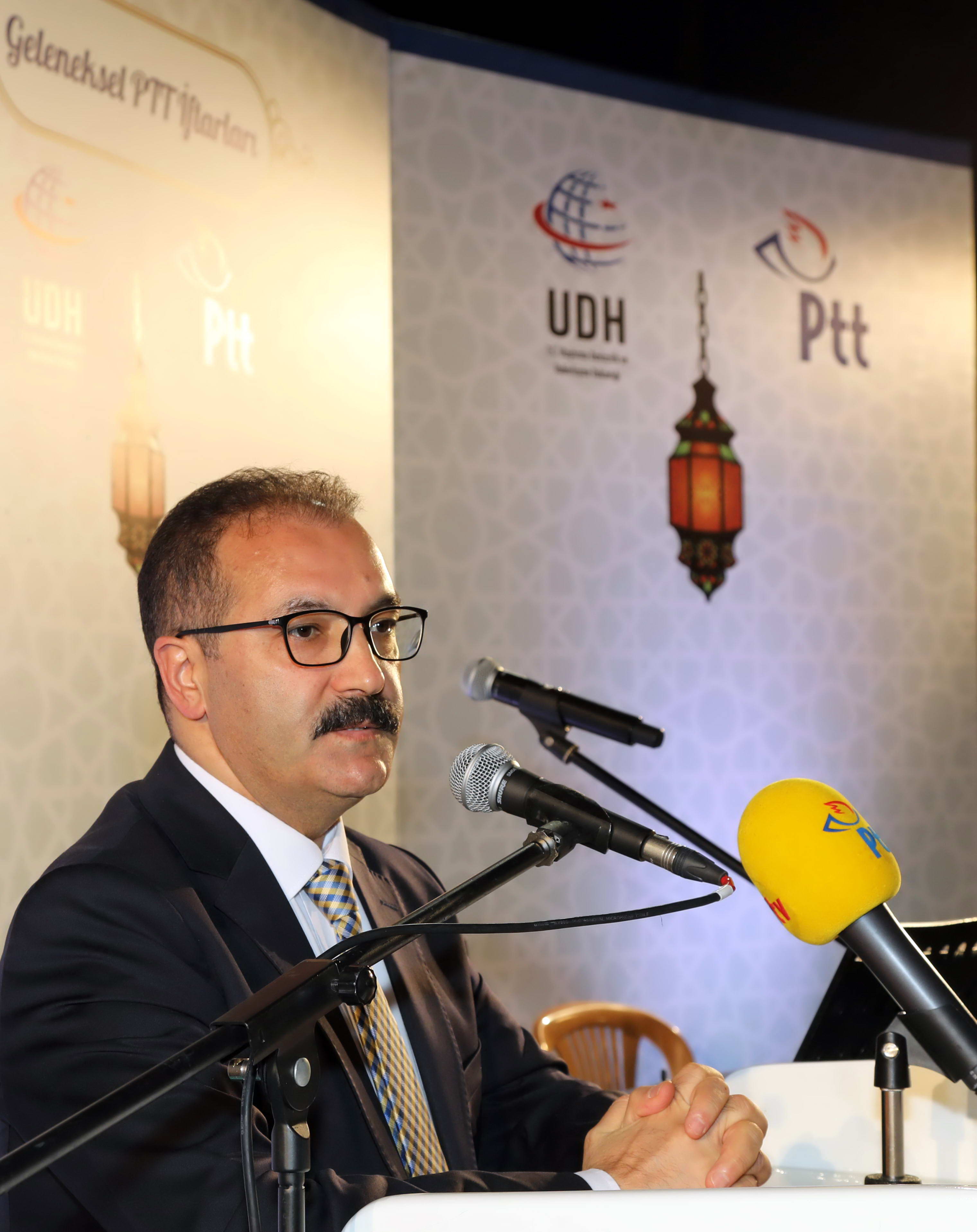 PTT Genel Müdürü Kenan Bozgeyik iftar yemeğinde yaptığı konuşmasında Gaziantep Üniversitesi’ne verdiği desteklerden dolayı teşekkür ederek şunları söyledi: “177 Yıldır ülkemizin istiklalinde ve istikbalinde olan posta teşkilatı insanların iyi gününde, kötü gününde, her anında toplumun yanında olmuş bir teşkilat. Bu günde ülkemizin daha ileriye gitmesi için gayret eden bir holdinge dönüşmüş, dünya markası olma yolunda giden bir şirket. PTT’imiz bütün dünya ya bütün insanlığa hizmet ederken kendi ülkesinde de zincirlerini kırıp, bir taraftan istihdam üretmek, yapmış olduğu hizmetleri arttırmak, devletine hizmet etme çabası içerisinde koştururken, bir taraftan da toplumuyla, insanıyla birleşerek sosyal projelerle toplumun daha ileriye gitmesi, daha huzurlu, daha mutlu olması için gayret etmektedir.”