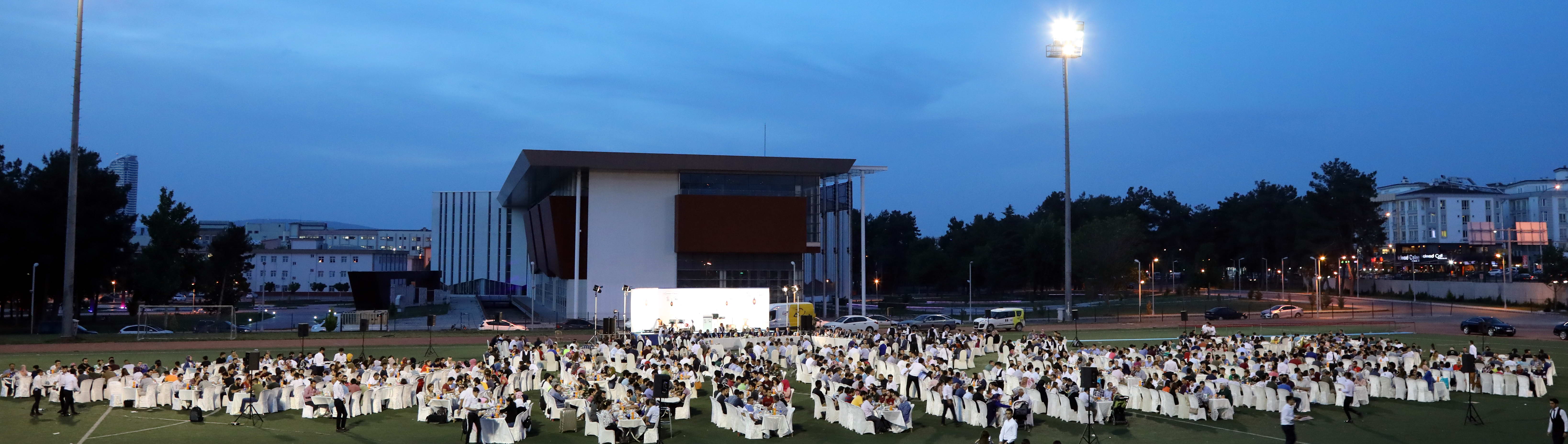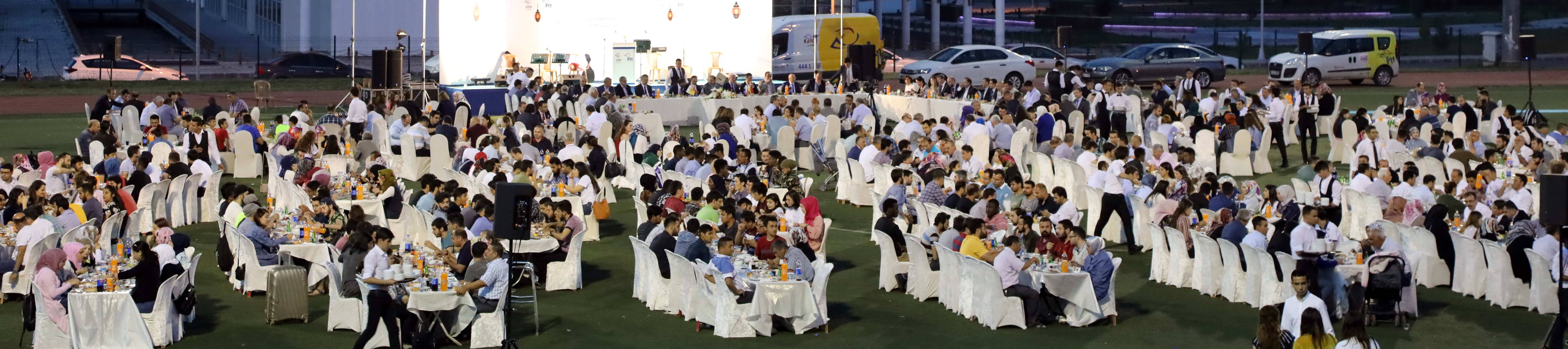 Gaziantep Üniversitesi çim sahada bin 200 kişinin katıldığı iftar yemeğinde; Gaziantep PTT Başmüdürlüğü çalışanları ve GAÜN’lü yabancı uyruklu öğrenciler oldukça samimi bir ortamda birlikte iftar açtı.