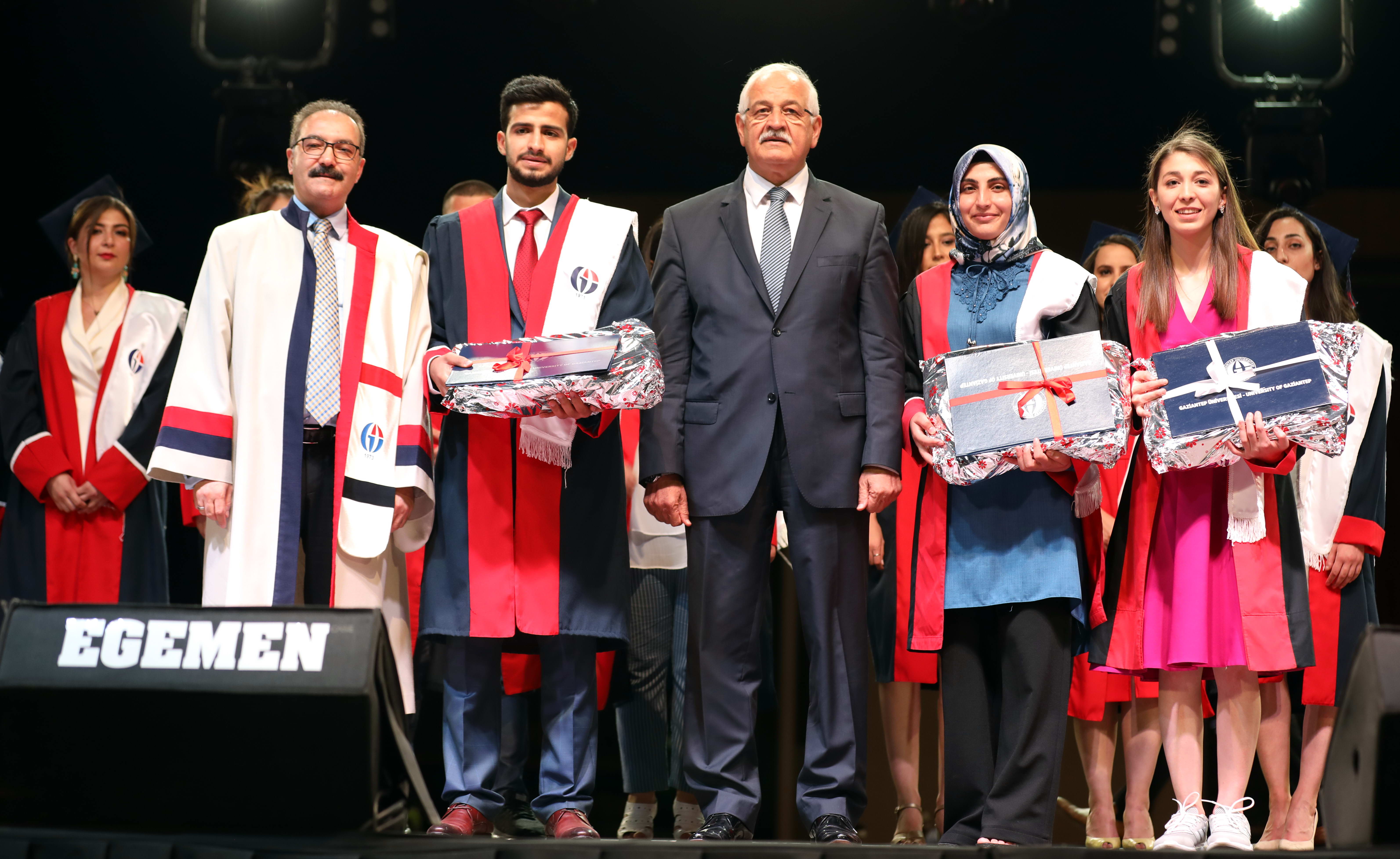 Mezun olan öğrencilere seslenen GAÜN Rektörü Prof. Dr. Gür, “Eğitim, hayat boyu öğrenmek demektir. Biz size etiği, ahlakı ve bilgiyi öğrenmenin yollarını öğrettik, gerisi size kalmıştır. Mezun olmakla kitaplar kapanmıyor tam tersine bundan sonra işiniz daha zor çünkü ayaklarınız üzerinde durmak zorundasınız. Bu aşamadan sonra paylaşmanın zenginliğini, bilgiyi birlikte öğrenmenin çeşitliliğini ve aynı zamanda yanınızda bulunanlara kendinizden fedakârlık ederek destek verme zamanıdır. Türkiye artık eğitime çok büyük yatırımlar yapıyor. Ülkemizde Üniversite sayısı 207 oluyor. Büyük yatırımlarla Ar-ge’ye, alt yapıya ve ekonominin temeli olan ileri düzey teknolojik ürünler üretmek için yeni insan kaynaklarına ihtiyacımız var. İşte biz üniversiteler olarak; 2023’e ve daha yüksek hedeflere giderken kaliteli, kalifiye ve niceliği yüksek meslek sahipleri yetiştirmek üzere üniversitelerimizi formatlıyoruz. Sizler bu formatlanmış eğitim sisteminden geleceğe katkı sağlayarak mezun oldunuz, donanımlısınız o yüzden Gaziantep Üniversitesi’nden mezun olduğunuz için onur duyun ve bu kimliğe lütfen hayatınız boyunca leke getirmeyin” dedi.