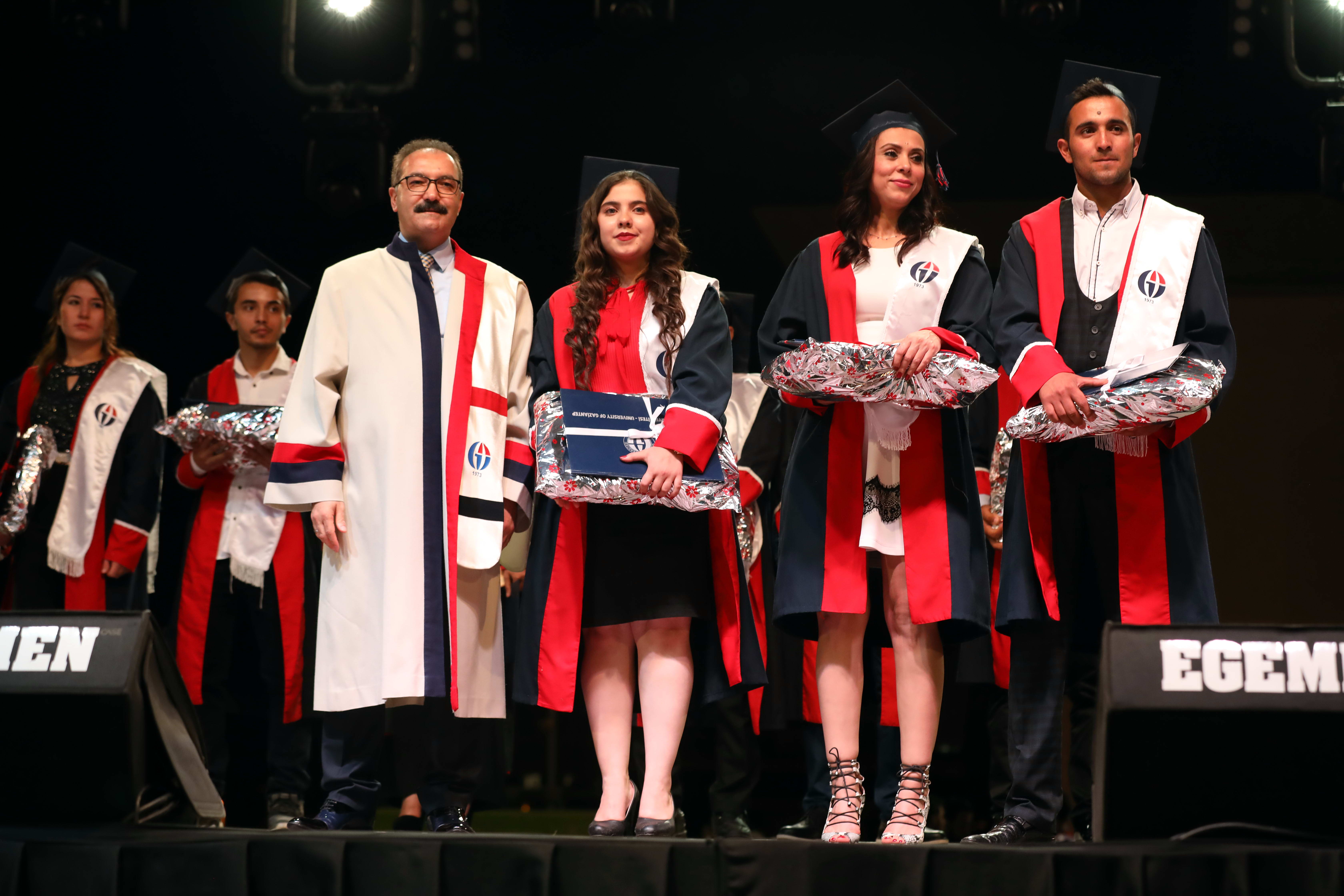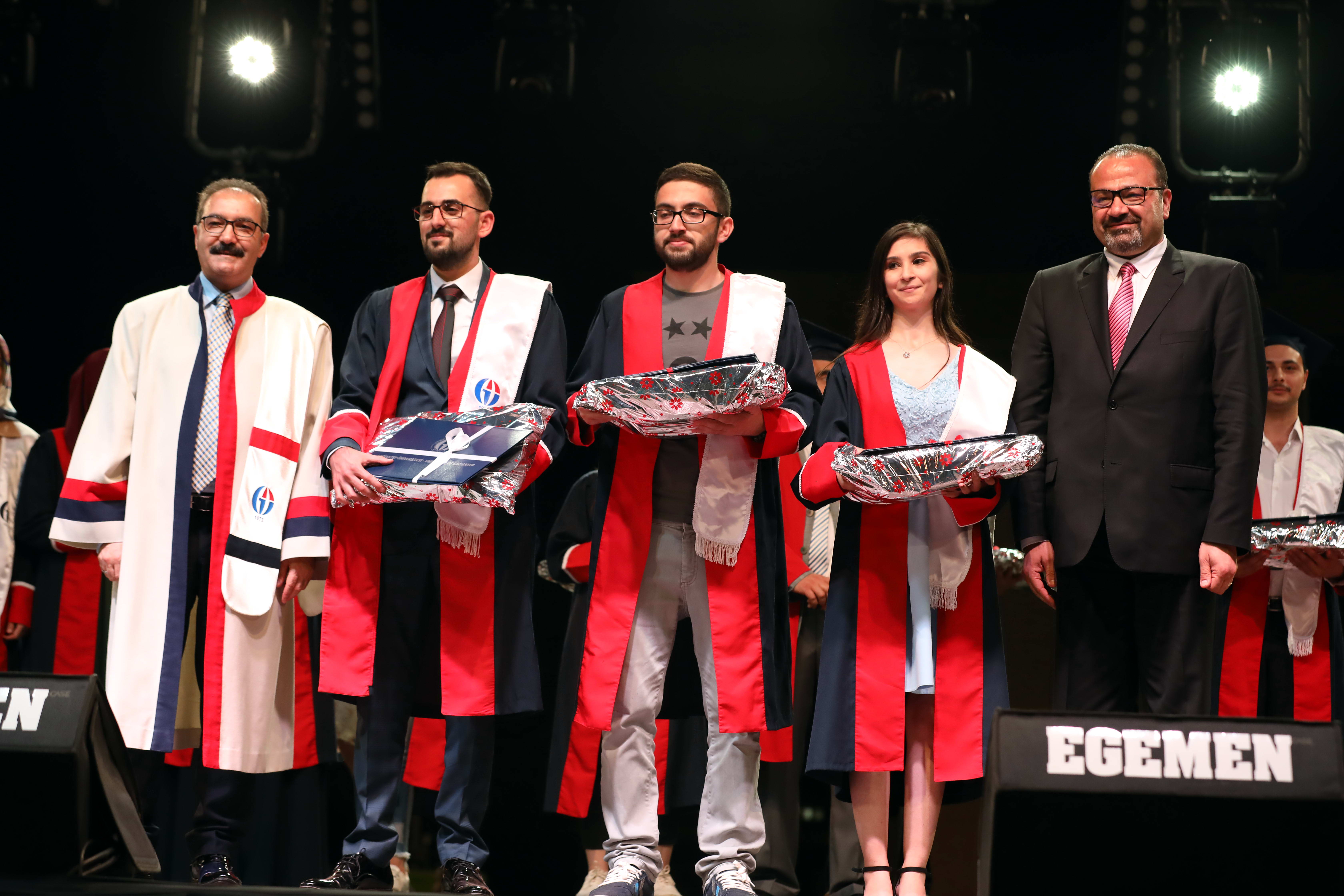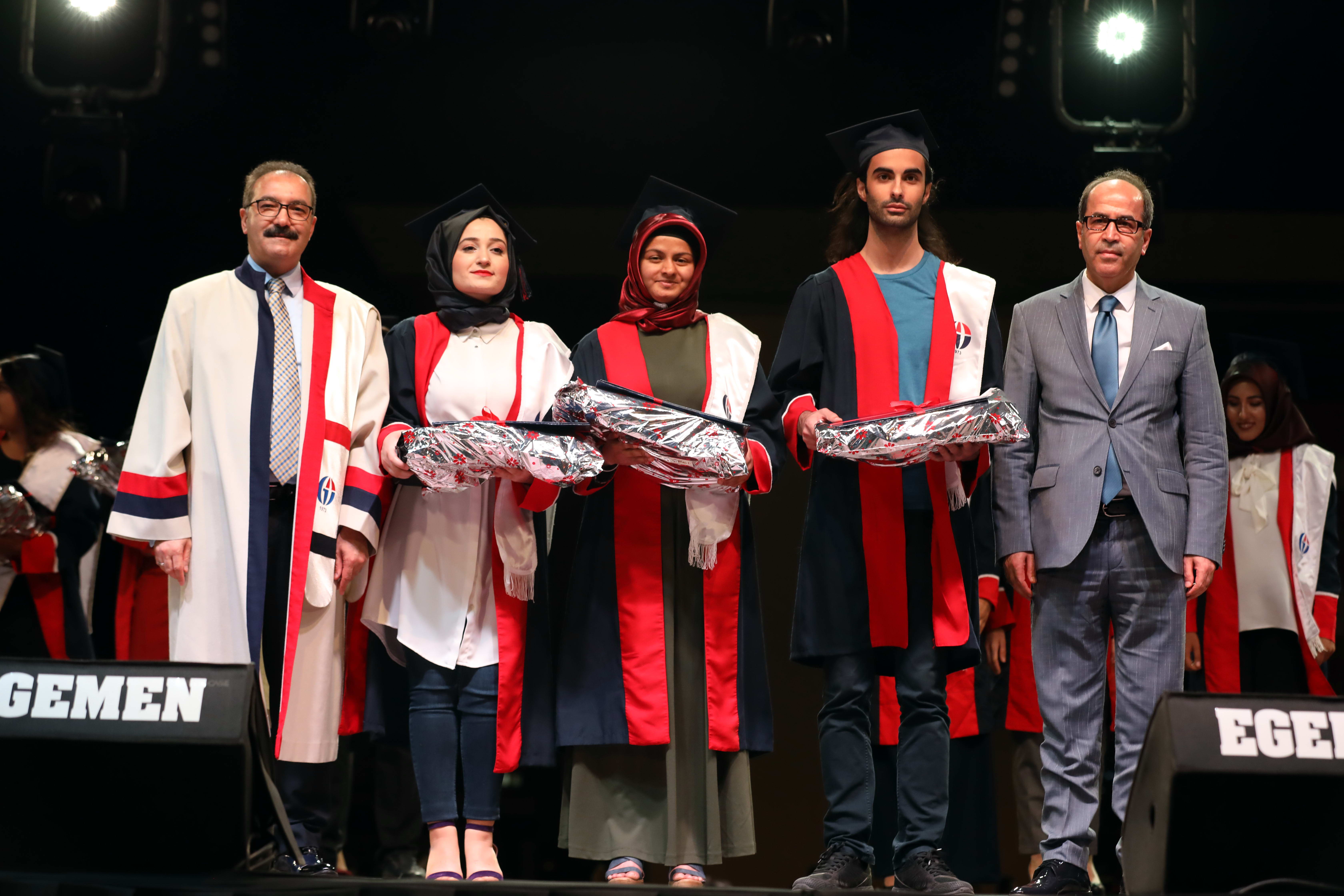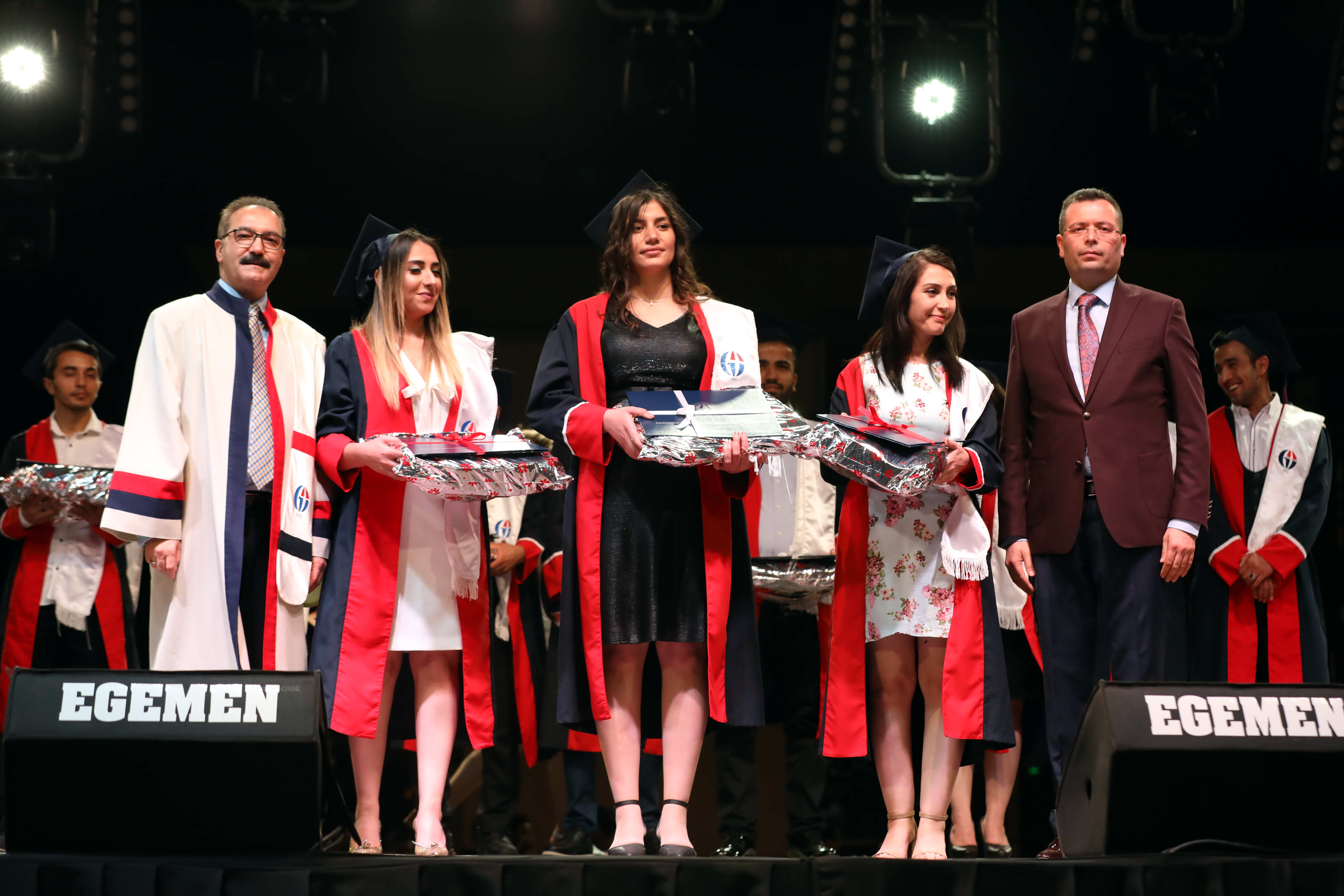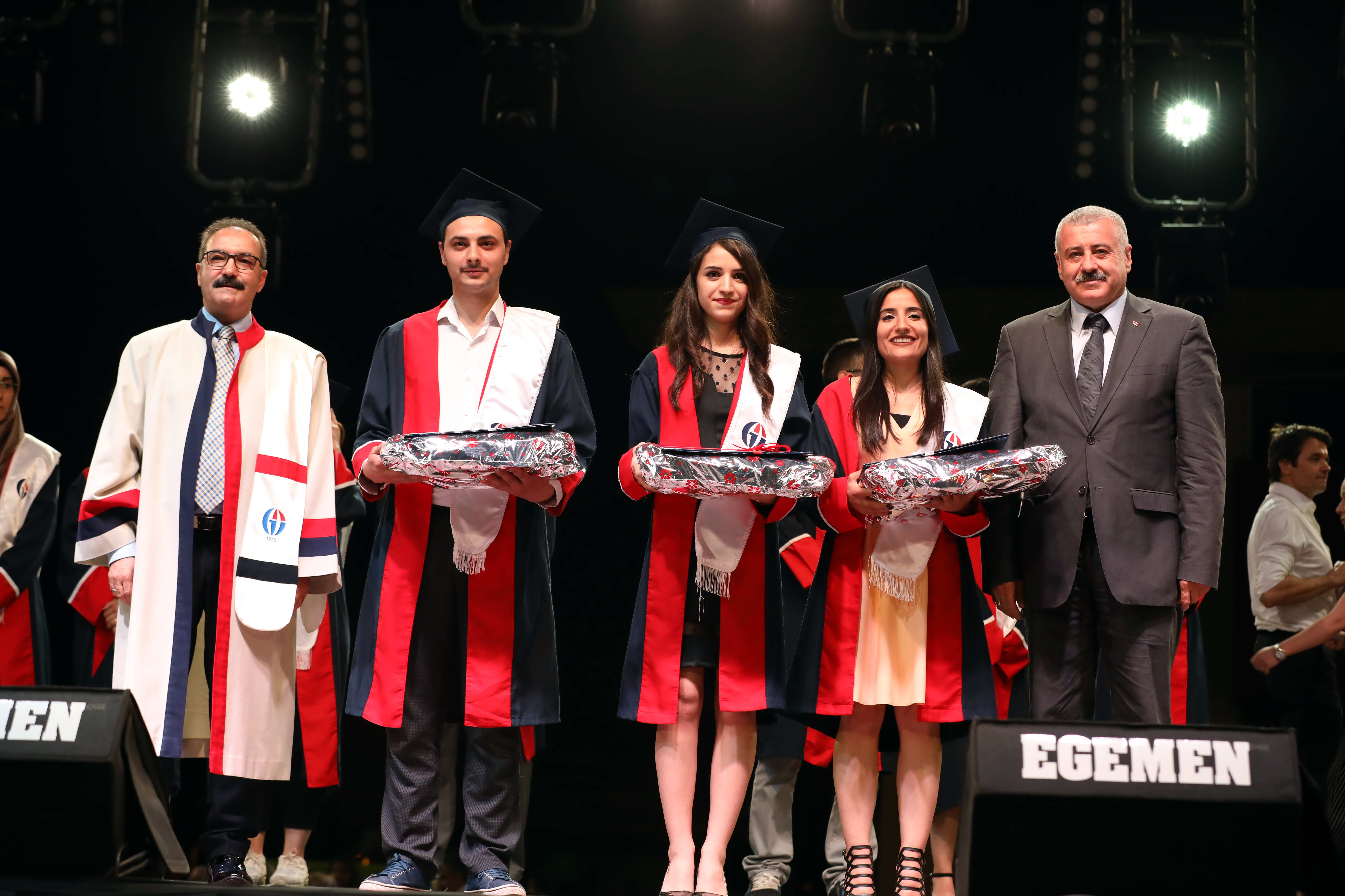 Mezun öğrencilerin Gaziantep Üniversitesi andını okuması sonrasında diploma ve hediyeleri Başbakan yardımcısı Mehmet Şimşek, Gaziantep Valisi Ali Yerlikaya, Gaziantep milletvekilleri, Ahmet Uzer, Mehmet Erdoğan, Derya Bakbak, Müslüm Yüksel, Mehmet Sait Kirazoğlu, Bayram Yılmazkaya, Sermet Atay, Gaziantep Üniversitesi Rektörü Prof. Dr. Ali Gür, Hasan Kalyoncu Üniversitesi Rektörü Prof. Dr. Tamer Yılmaz, SANKO Üniversitesi Rektörü Prof. Dr. Güner Dağlı, Şehinbey Belediye Başkanı Mehmet Tahmazoğlu, Gaziantep İl Emniyet Müdürü Faruk Karaduman, Gaziantep Sanayi Odası Yönetim Kurulu Başkanı Adnan Ünverdi, Gaziantep Üniversitesi Rektör Yardımcıları Prof. Dr. Metin Bedir, Prof. Dr. Şehmus Demir, Prof. Dr. Avni Gökalp, Gaziantep Üniversitesi Genel Sekreteri Doç. Dr. Ayhan Doğan, Rektör Danışmanları Prof. Dr. Süleyman Ganidağlı, Doç. Dr. Necip Fazıl Yılmaz tarafından verildi.