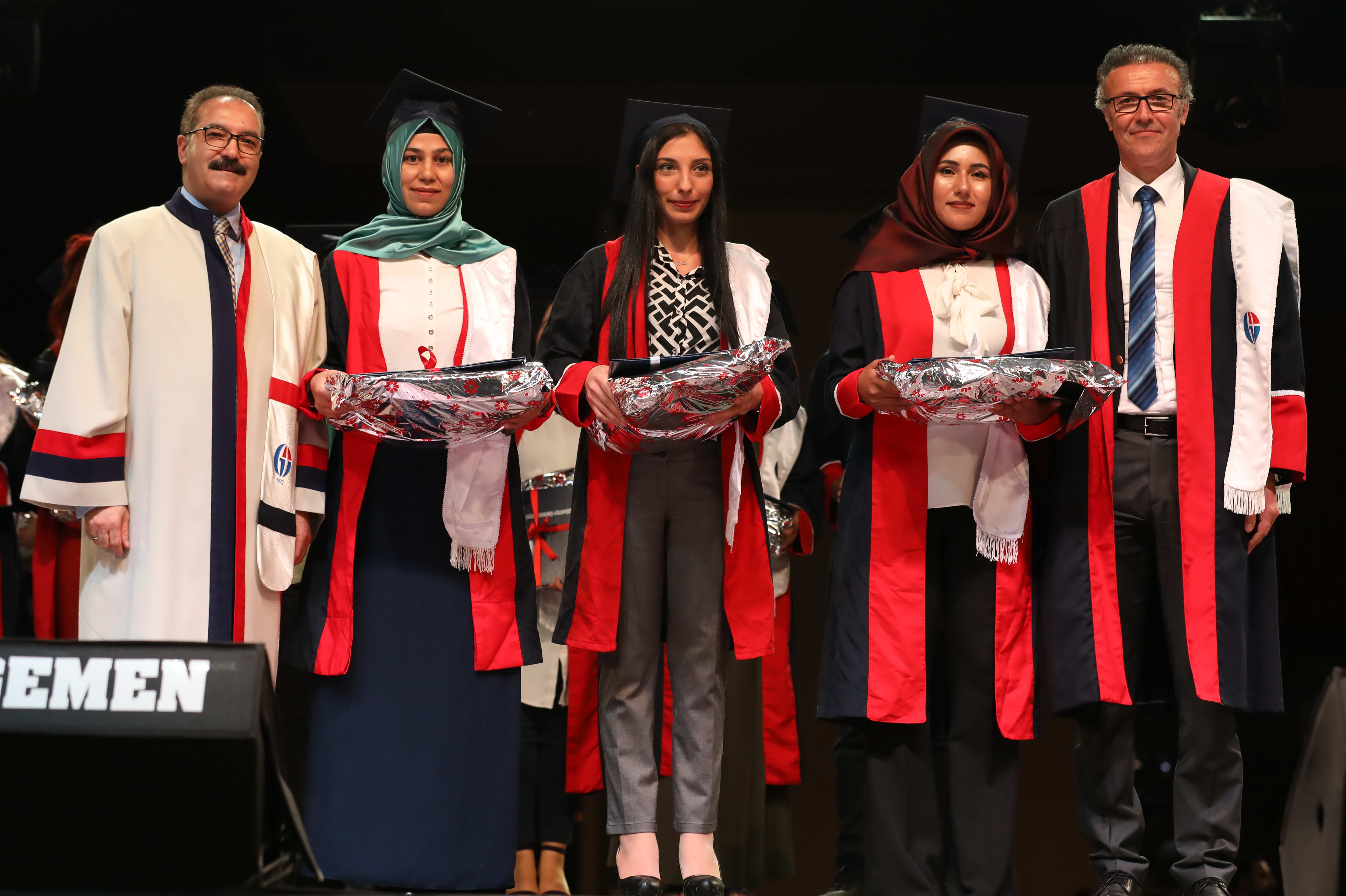 Mezuniyet töreni öğrencilerin hep birlikte kep atmalarıyla sona erdi.