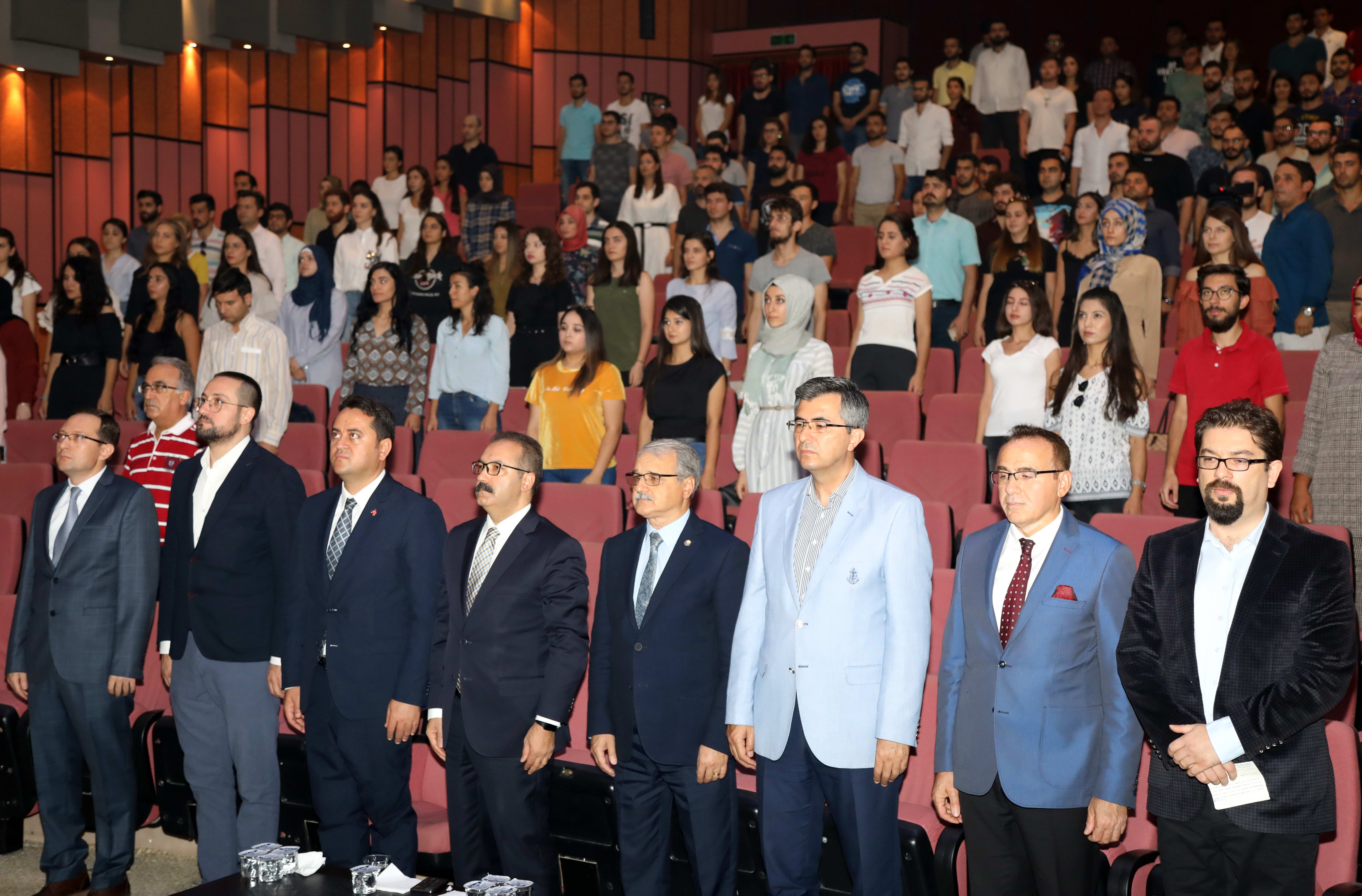 Törenin açılışında konuşan Gaziantep Üniversitesi Rektörü Prof. Dr. Ali Gür, Gaziantep Üniversitesi’nin mühendislik alanı dahil olmak üzere lisans programlarında yüzde yüze yakın bir doluluk oranına sahip olmasından duyduğu memnuniyeti belirtti. Prof. Dr. Gür, “Bir bölümümüz hariç diğer tüm bölümlerimiz kadim geleneklerine bağlı olarak verdiği kaliteli eğitimin neticesinde bölgesel problemlere, şehir algısına rağmen doluluk oranını yüzde yüzle tamamlıyor. Bu sizlerin ve bizleri başarısı.  Bu başarılardaki en büyük paylardan birisi de var olan mühendislik alanındaki eğitim kalitemizin tescilli olması. 45 Yıllık bir geleneğimiz var. Gaziantep Üniversitesi mühendislik bölümü olarak kuruldu ve sonra GAÜN Tıp Fakültesi’yle birlikte gelişme ivmesini devam ettiriyor” dedi.