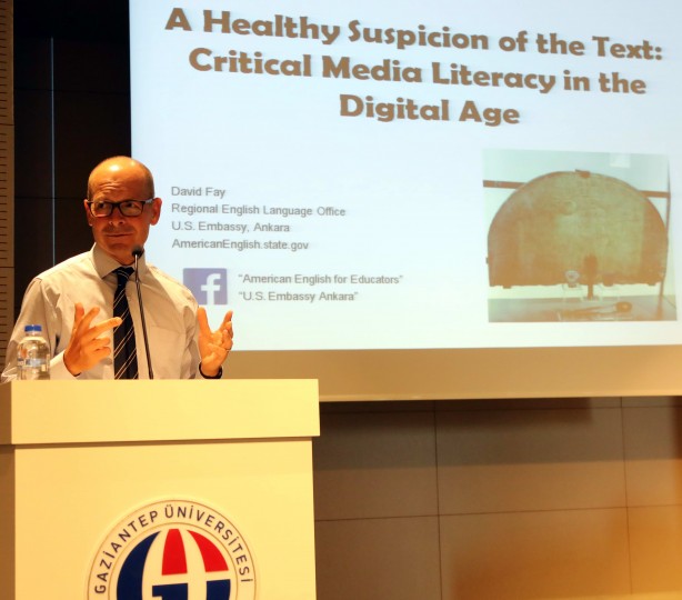 “Eleştirel Medya Okur-Yazarlığı” (A HealtySuspicion of theText: Critical Media Literacy in theDigital Age) konulu eğitim, ABD Büyük Elçiliğinden Eğitim Fakültesi Ateşesi David Fay tarafından Gaziantep Üniversitesi (GAÜN) Mavera Kongre ve Kültür merkezinde gerçekleşti.