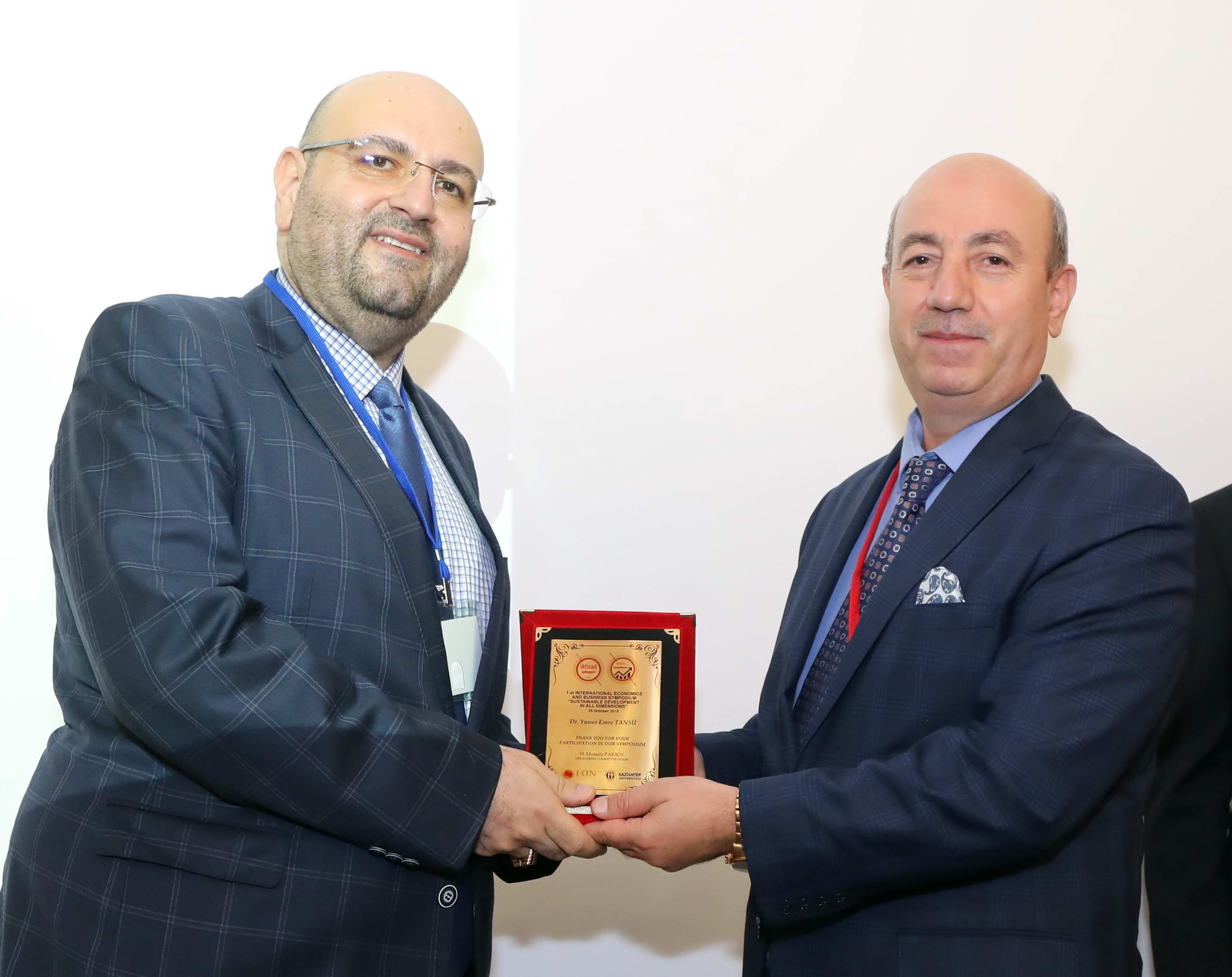 Konuşmaların sonrasında Kilis 7 Aralık Üniversitesi İktisadi ve İdari Bilimler Fakültesi Dekanı Prof. Dr. Sadettin Paksoy tarafından Fon Üniversitesi Rektör Yardımcısı Dr. Yunus Emre Tansü ve Dr. Krzysztof Drachal’a plaket takdim edildi.