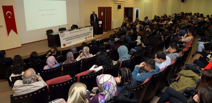 Gaziantep Üniversitesi (GAÜN) ve Makedonya Fon Üniversitesinin katkılarıyla İktisat Dergisi koordinatörlüğünde düzenlenen “Tüm Boyutlarıyla Sürdürülebilir Kalkınma” temalı 1. Uluslararası Ekonomi ve İşletme Sempozyumu açılış töreni Mühendislik Fakültesi Konferans Salonunda gerçekleştirildi.