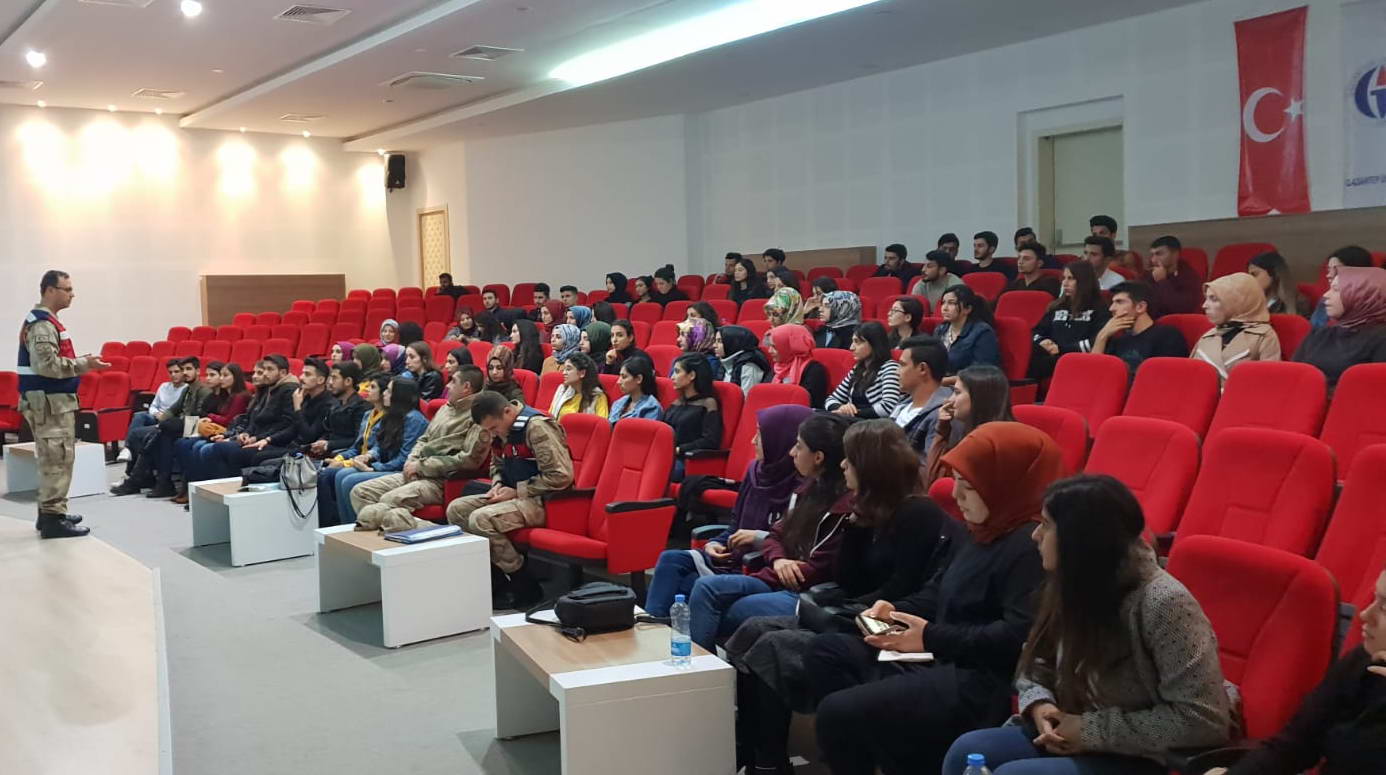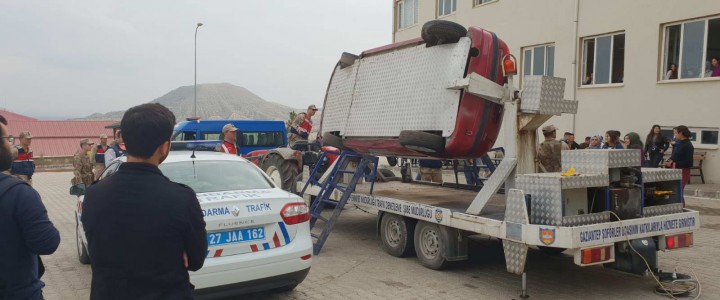 Nizip İlçe Jandarma Komutanlığı personeli tarafından, Gaziantep Üniversitesi (GAÜN) Nizip Eğitim Fakültesi ve Nizip Meslek Yüksekokulu bünyesinde eğitimlerini sürdüren öğrencilere emniyet kemerinin önem ve kullanımına dikkat çekmek amacıyla simülasyon aracı ile uygulamalı eğitim verildi.