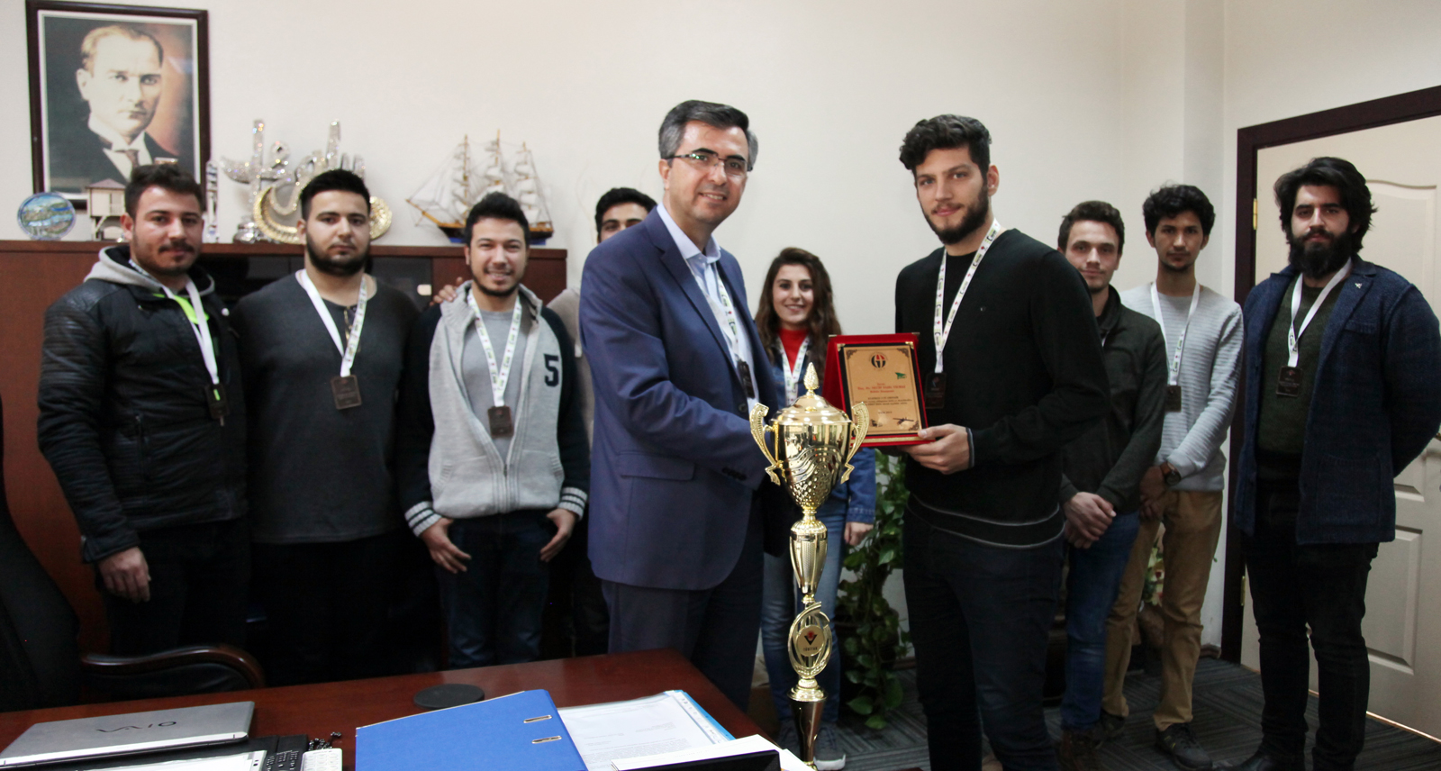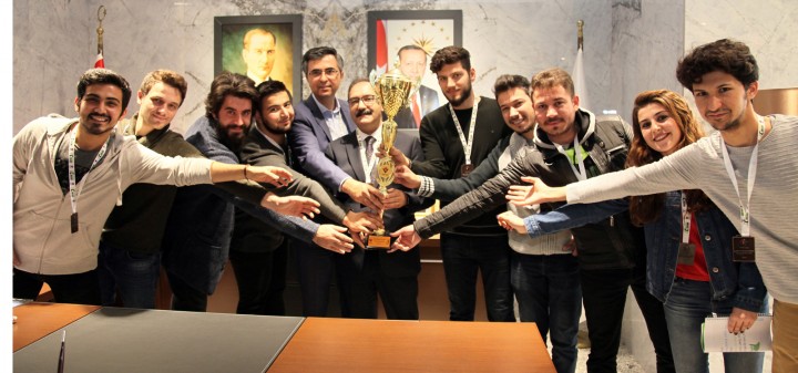 Gaziantep Üniversitesi (GAÜN) Otomobil Robot ve Enerji Topluluğu (ORET) öğrencileri, TÜBİTAK tarafından düzenlenen “Efficiency Challange” yarışmasında kazandıkları görsel tasarım ödülü kupasını Rektör Prof. Dr. Ali Gür’e takdim etti.