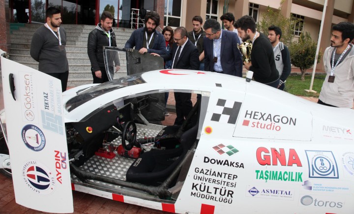 Önce Rektör Danışmanı ve Naci Topçuoğlu Meslek Yüksekokulu Müdürü Doç. Dr. Necip Fazıl Yılmaz’ı makamında ziyaret ederek çalışmaları sırasındaki desteklerinden dolayı teşekkür plaketi takdim eden GAÜN Otomobil Robot ve Enerji Topluluğu üyeleri, daha sonra Rektör Prof. Dr. Ali Gür’e teşekkür etti. Rektör Prof. Dr. Gür’e yarışmayla ilgili bilgi veren Mekanik Takım Lideri Ali Kurşun, TÜBİTAK tarafından bu yıl 14’üncüsü düzenlenen Uluslararası Alternatif Enerjili Araç Yarışları’na yaklaşık bin 500 öğrenicinin katıldığını ve topluluk olarak “Elektromobile” kategorisinde kendi kulüp atölyelerinde imal ettikleri otomobilin Görsel Tasarım Ödülü’nü kazandığını vurguladı. Mekanik Takım Lideri Kurşun, “Bizim ortaya çıkardığımız ve ödül almamızı sağlayan aracın en büyük özelliği tüm mekanik aksamları ve elektronik devrelerinin kendi atölyemizde imal edilmiş olmasıdır. Uzun süren tasarım ve hesaplama sürecinin ardından çok kısıtlı bir bütçeyle ve kısa sürede böyle bir ürün ortaya çıkardığımız için çok mutluyuz. Tüm hızımızla önümüzdeki yarış için yeni bir tasarıma başladık. Başarılarımızın devam etmesi için elimizden geleni yapmaya devam edeceğiz. Desteklerinizden dolayı siz başta olmak üzere hocalarımıza teşekkür ederiz” dedi.