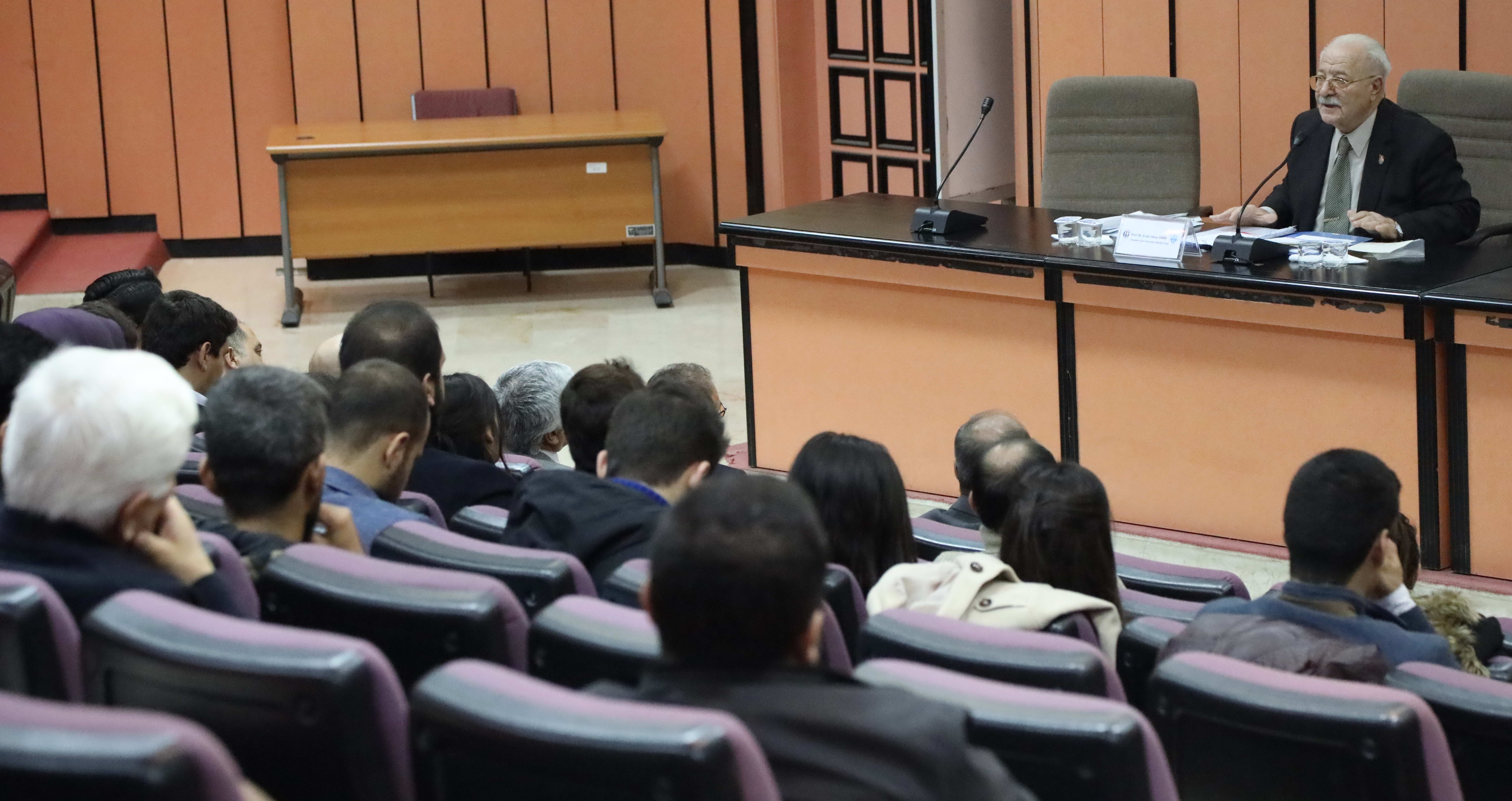 Türk Devlet geleneğinin kısa bir zaman diliminde oluşan bir gelenek olmadığını vurgulayan Öğretim Üyesi Prof. Dr. Eyüp Günay İspir, bu yönetme sanatının asırlarca süregelen ve günümüze kadar da adeta özü olarak ulaşan bir süreçten geçtiğini söyledi. Prof. Dr. İspir sözlerinin devamında; “Hun İmparatorluğundan başlayacak olursak milattan önce 220 yılını bize gösteriyor. Daha sonra Göktürkler, Uygurlar vardır. Türklerin İslamiyet ile tanışmasıyla birlikte dini kabullenmelerinin sonucunda devlet yönetiminde yeni bir takım ilavelerin ortaya çıkışıyla gerçekleşen ve tarih üzerinde etkisini gösteren Karahanlılar vardır. Büyük Selçuklu, Anadolu Selçuklu Devletleri vardır ve nihayet Osmanlı ve Türkiye Cumhuriyeti Devleti. Bu devletler zannedilmesin ki birisi yıkıldı diğeri kuruldu. Bu devletlerin hepsinin birbiriyle bütün bir ilişkinin olduğunu kabul eden bir görüşe sahibim. İddiam da şudur ki; sadece devlet yönetiminde hanedanlar değişmektedir. Hanedanlar değiştiği için o hanedanın isminin o devlete verilmesi suretiyle ortaya çıkan bir süreç vardır. Dolayısıyla gelenek de böylece başlar” diyerek, Türk Devlet geleneği içerisinde öne çıkan konular hakkında katılımcıları bilgilendirdi.