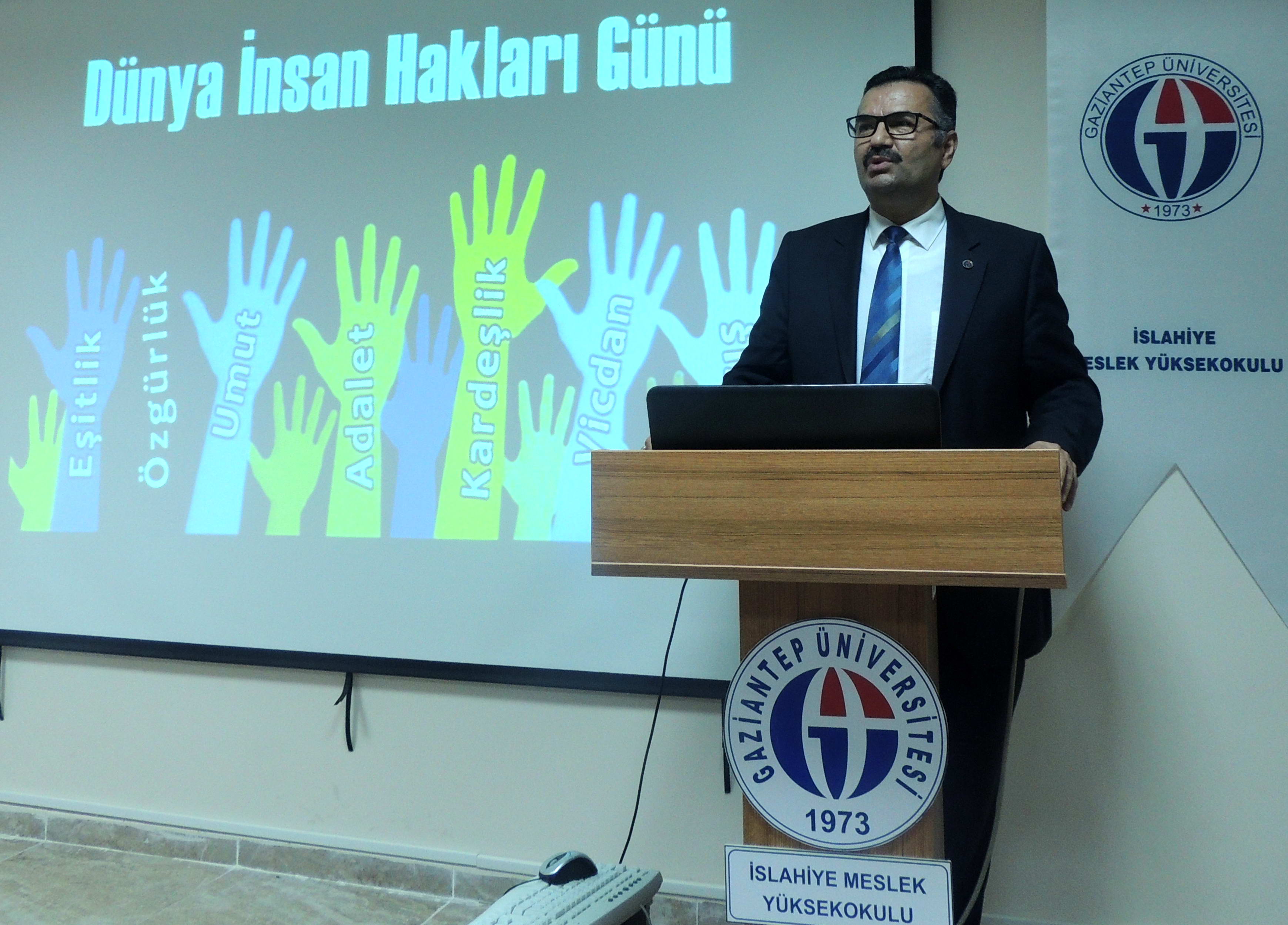 Gaziantep Üniversitesi (GAÜN) İslahiye Meslek Yüksekokulu tarafından “10 Aralık Dünya İnsan Hakları” günü nedeniyle “Bir Başka Açıdan İnsan Hakları” konulu seminer düzenlendi.