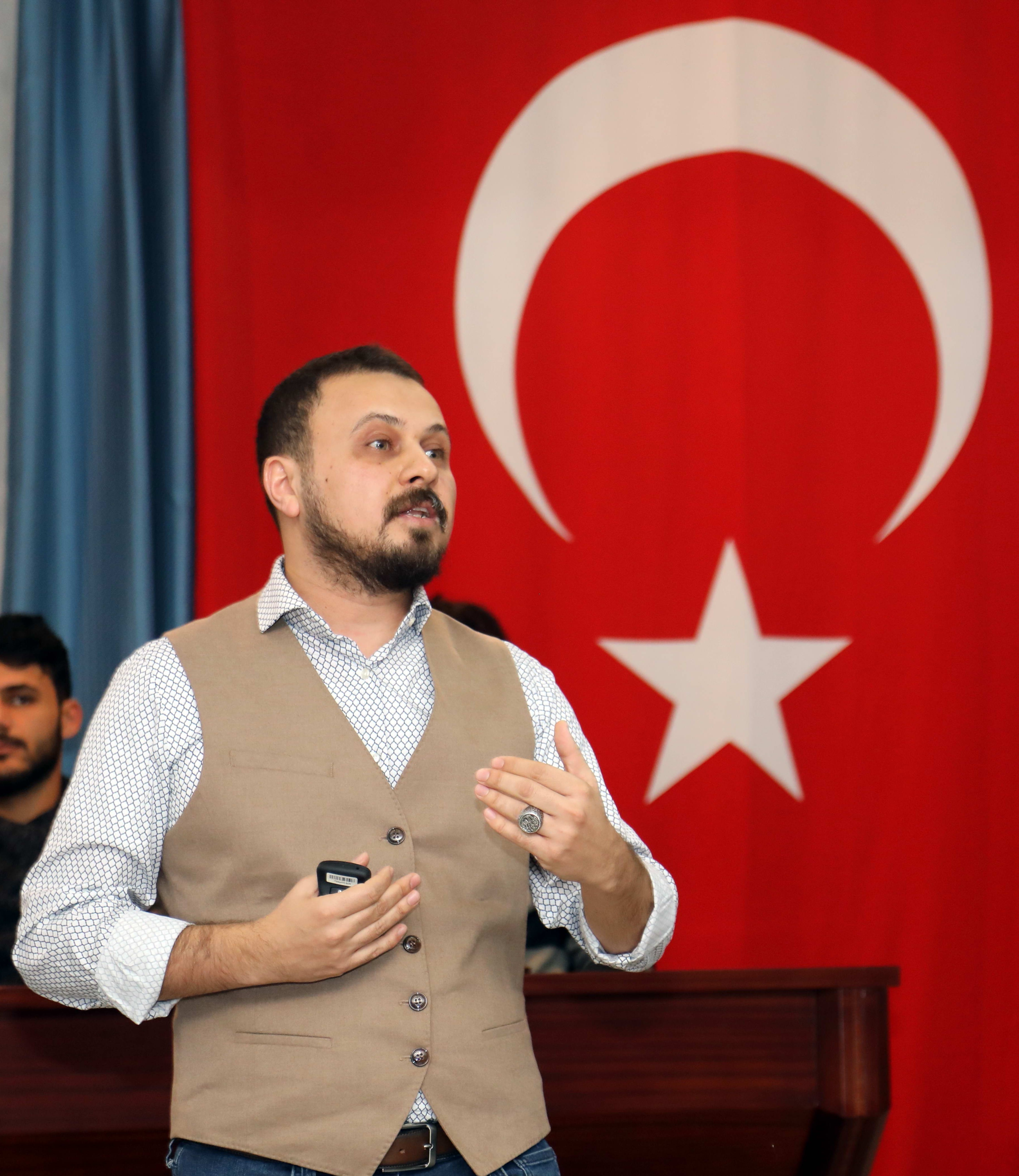 Basit ve akıcı konuşabilmek için kitap okumanın önemine vurgu yapan Öğr. Gör. Süleyman Şahan; “En önemli formül dinlemek, yaşadığımız gürültünün en büyük nedenleri bizleriz. Birbirimizi anlamamamız, birbirimizi anlamamamız üzerine bir hayat kurgulamamız ve birbirimize saygı duymamamız” dedi.