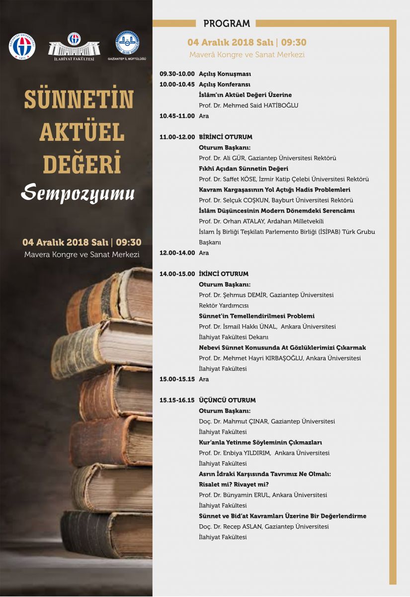 Gaziantep Üniversitesi İlahiyat Fakültesi, dallarında otorite olarak kabul edilen akademisyenlerin katılacağı Sünnetin Aktüel Değeri konulu sempozyum düzenleyecek. Sempozyumda, hadis ve sünnetin doğru anlaşılması ve sünnetin çağa taşınması konusunda neler yapılabileceğinin değerlendirileceğini belirten GAÜN İlahiyat Fakültesi Dekanı ve Rektör Yardımcısı Prof. Dr. Şehmus Demir, “Sempozyumun, Mevlid-i Nebi Haftası’nda gerçekleştirilecek olması da, Hz. Peygamber’in şahsına ve bizlere bıraktığı emanetine saygı açısından önem…