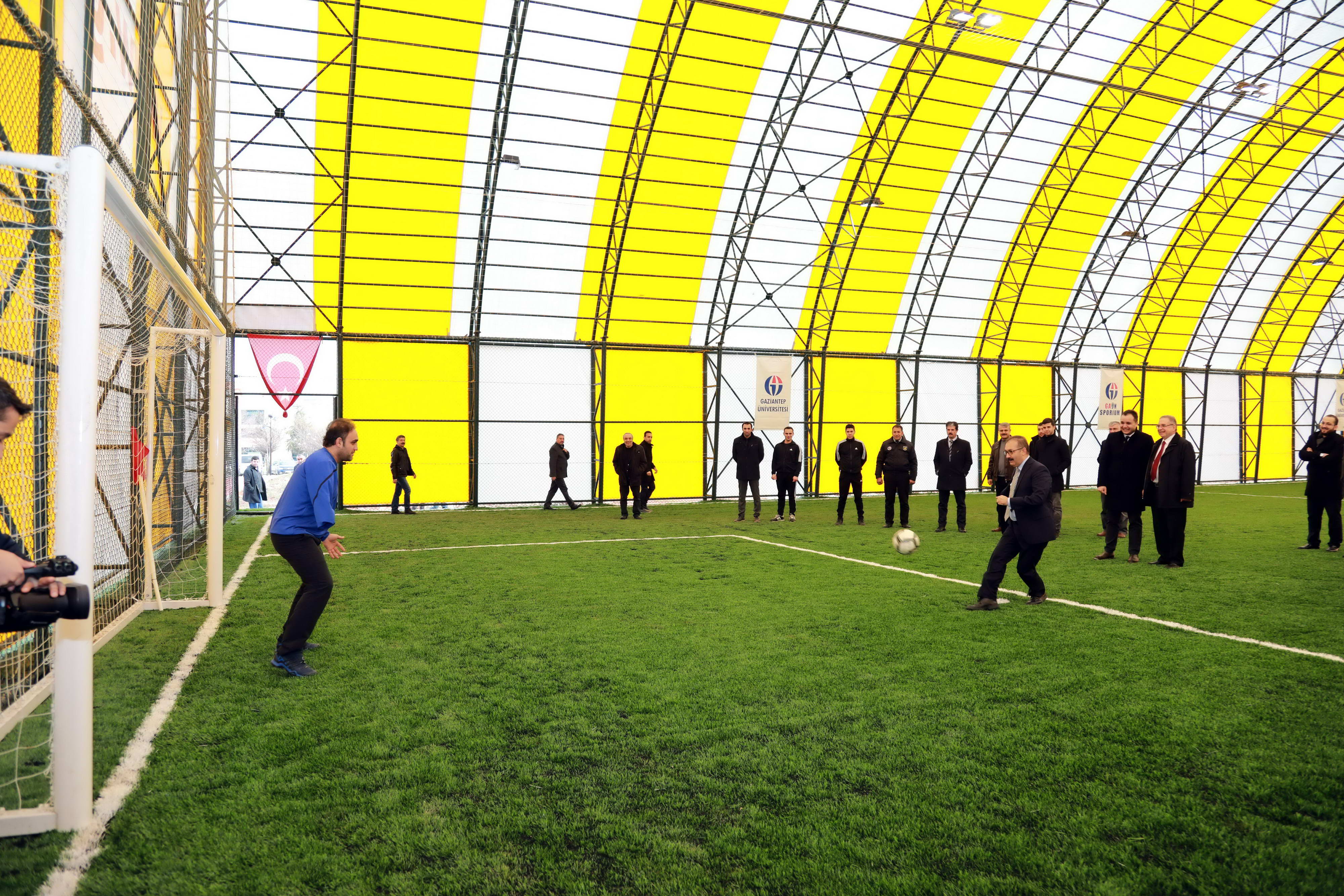 Rektör yardımcıları Prof. Dr. M. Avni Gökalp, Prof. Dr. Şehmus Demir ve Prof. Dr. Metin Bedir’in yansıra, Rektör Danışmanları Doç. Dr. Necip Fazıl Yılmaz ve Öğr. Gör. Fahri Çepik, Genel Sekreter Yardımcısı Nuh Okumuş, akademisyenler ve öğrencilerin de katıldığı açılışta Rektör Gür, Türkiye Ampute Milli Takım Kalecisi Fatih Karakuş’un koruduğu kaleye iki penaltı atışı kullandı. Gür, atışlardan birisini gole çevirirken, diğer atışı ise Kaleci Karakuş kurtardı.