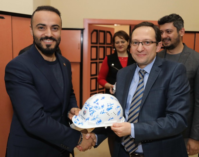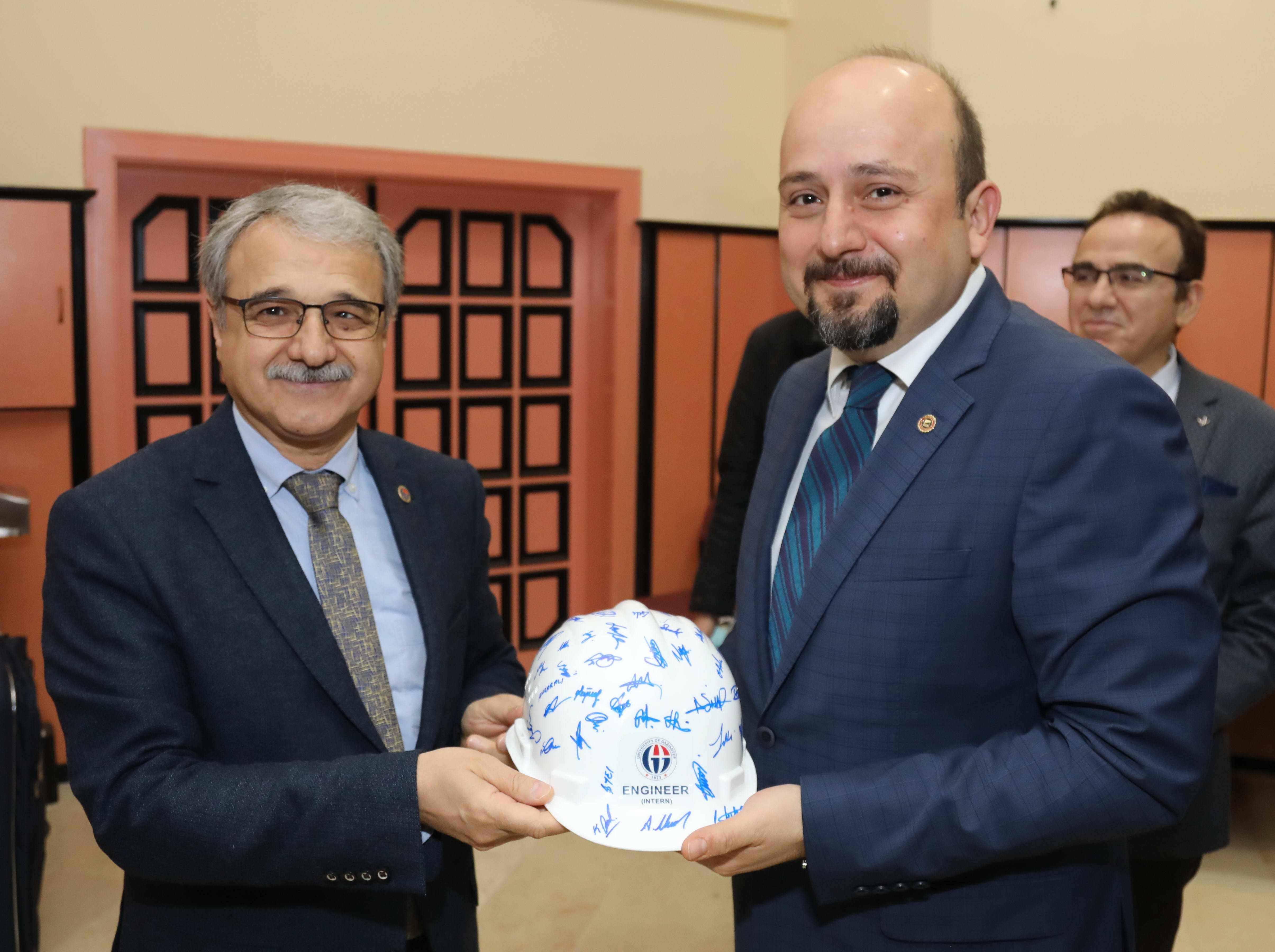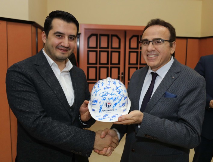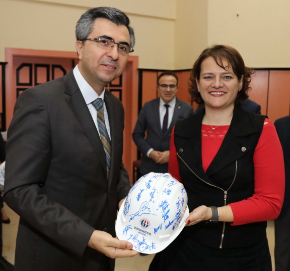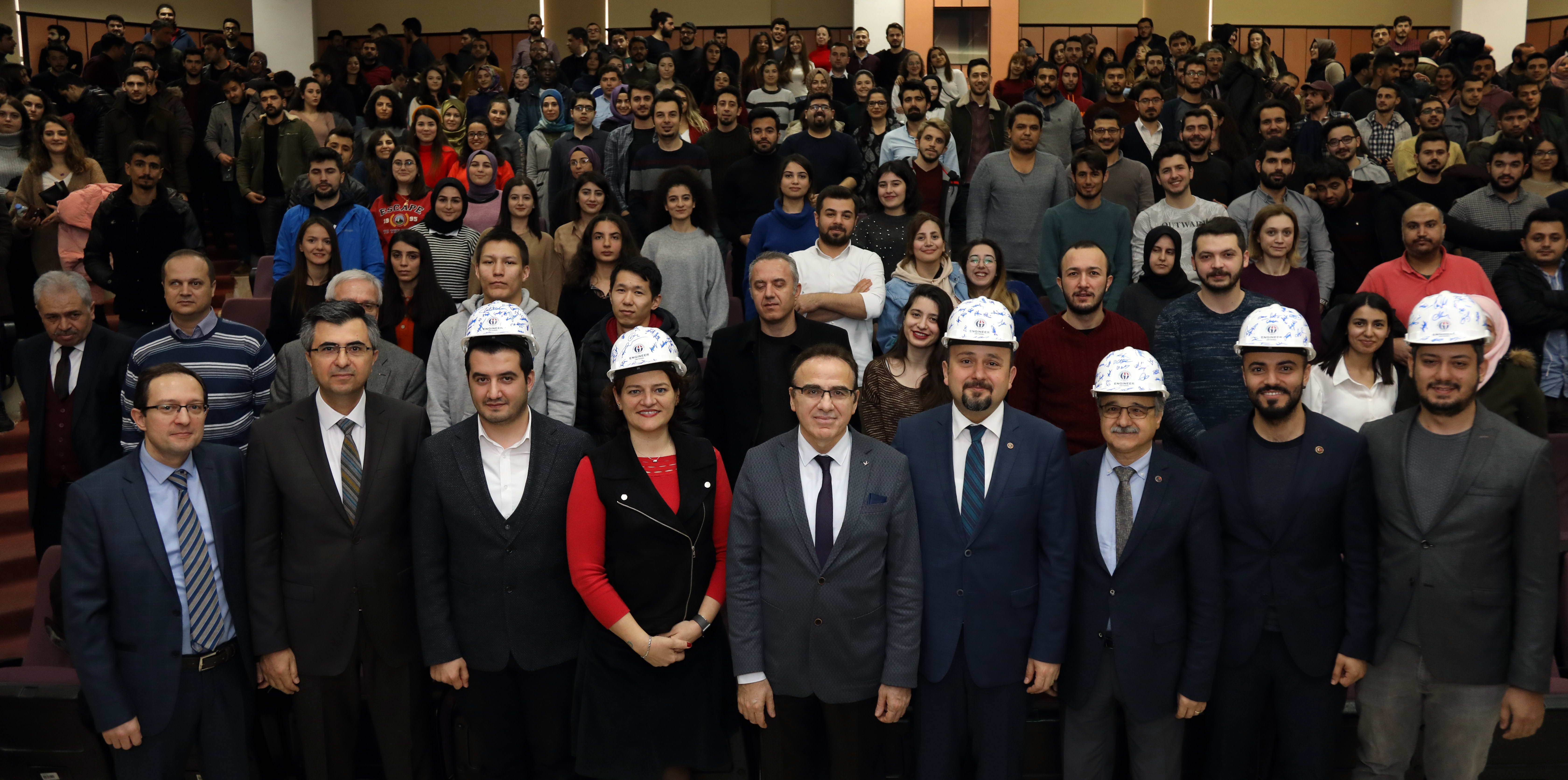 Programın sonunda, Rektör Yardımcısı Prof. Dr. Metin Bedir, Rektör Danışmanı Doç. Dr. Necip Fazıl Yılmaz, Mühendislik Fakültesi Dekanı Prof. Dr. Mustafa Günal ve Mühendislik Fakültesi Dekan Yardımcısı Doç.Dr. A. Tolga Bozdana konuşmacılara baret takdim etti.
