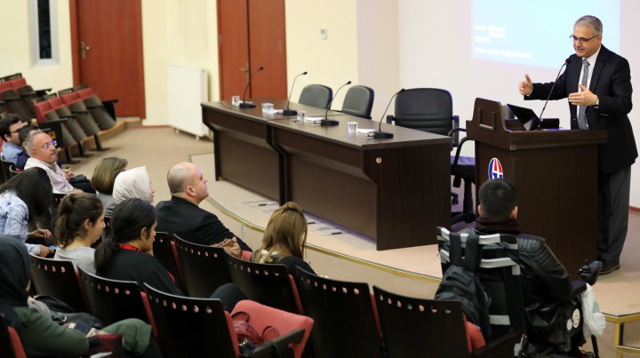 Toplantının açılış konuşmasını yapan GAÜN Rektör Yardımcısı Prof. Dr. Metin Bedir, engelli öğrencilere seslendiği konuşmasında, “Sizlerin sorunlarıyla ilgilenmek, sizlere engel olabilecek durumları aşabilmek, engelsiz hale getirmek birinci görevimiz. Bununla ilgili ülkemizde çok güzel çalışmalar yapılıyor. Yeni çıkan kanun ve yönetmeliklere göre sizlerle ilgili devletin daha güzel yaklaşımları var. Sizlere bir takım imkanları daha iyi sunma çalışmaları var. Bunlar kanunlar, yönetmeliklerle birlikte sabit hale getirtildi. Biz de üniversite olarak hem insancıl hem inancımız açısından üzerimize düşeni yapmanın yanı sıra bir de kanunların gerektirdiği şekilde size karşı sorumluluklarımızı yapmak zorundayız” ifadelerinde bulundu.