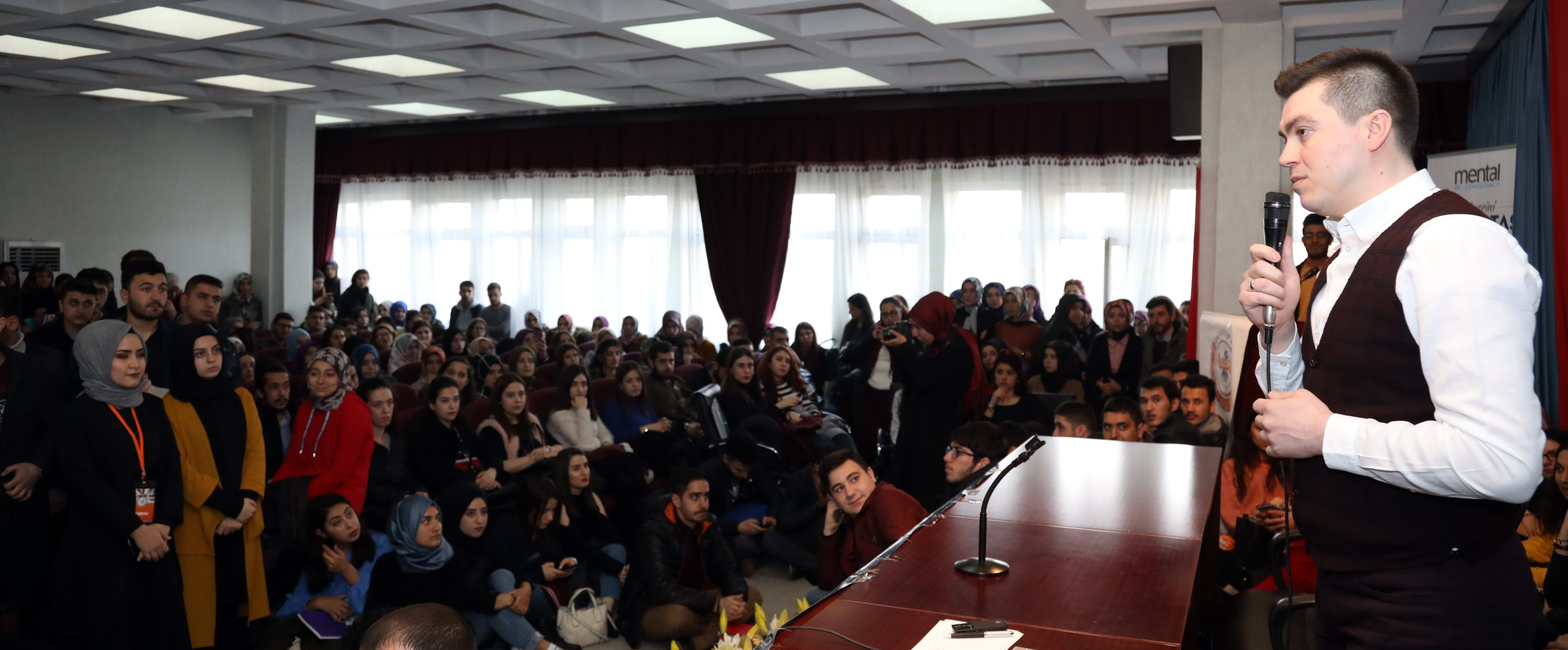 Seminerde mental danışmanlık hakkında konuşmacıları bilgilendiren Sinan Yavuz, “Umarım bugün kariyer yolculuğunuzda yeni bir ivmenin yeni bir yükselişin yeni bir başlangıcın günü olur” dedi. Yavuz, “Sizler gibi düşünebilen, sizlerin perspektifinden bu meselelere bakan, sizlerin isyanlarını anlayarak bu işi profesyonelleştirmeye çalışan bir firmayız. 2014 Yılında kurulduk. Sizler gibi genç bir firmayız ve işlerimize de genç bakıyoruz. Yaklaşık 60 kişi bu işi yapıyoruz ve yaş ortalamamız yirmi sekiz. Bu işleri yaparken sizler gibi bakan, sizleri önemseyen arkadaşlar. Hem ulusal hem de uluslararası bazda projeler gerçekleştiriyoruz. Sadece Türkiye’deki kariyerlerinizle alakalı hususları paylaşmayı düşünmüyoruz. Bunun yanında yurtdışında Azerbaycan, Katar, Fas, Ürdün gibi farklı alanlarda Avrupa’nın çeşitli bölgelerinde yurtdışına öğrenci göndermemiz gibi bu tarz imkanları da sizlerle paylaşmak ve bu tarz imkanlar üzerine çalışma yaptığımızı anlatmak üzere burada bulunuyoruz” ifadelerinde bulundu.