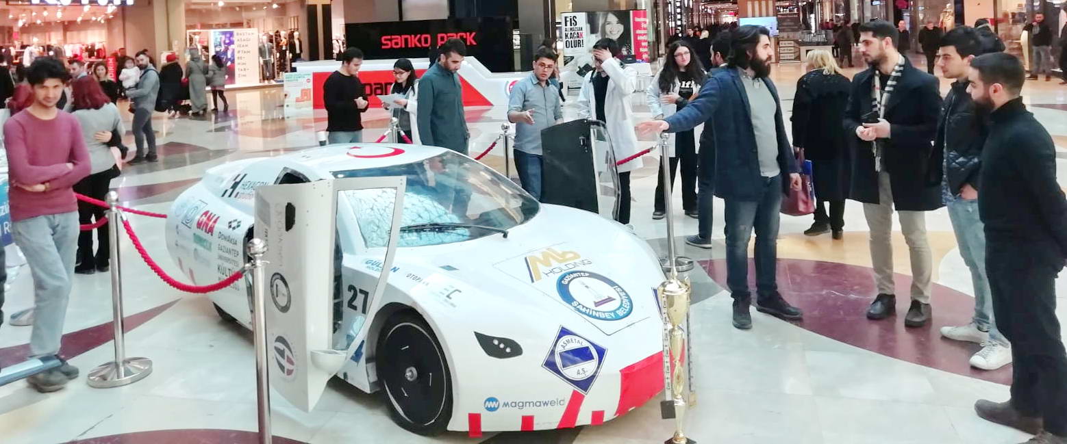 Gaziantep Üniversitesi (GAÜN) Otomobil, Robot ve Enerji Topluluğu’nun (ORET) tasarım ödüllü elektrikli otomobili ECOTRON Sanko Park’ta sergileniyor.