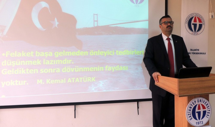 İslahiye Meslek Yüksekokulu Konferans Salonunda düzenlenen konferansta Yüksekokul Sekreteri Bilal Erdoğan öğrencileri sivil savunma, afetler, afet bilinci ve depremden korunma yolları hakkında bilgilendirdi.