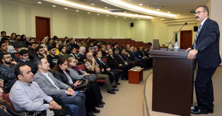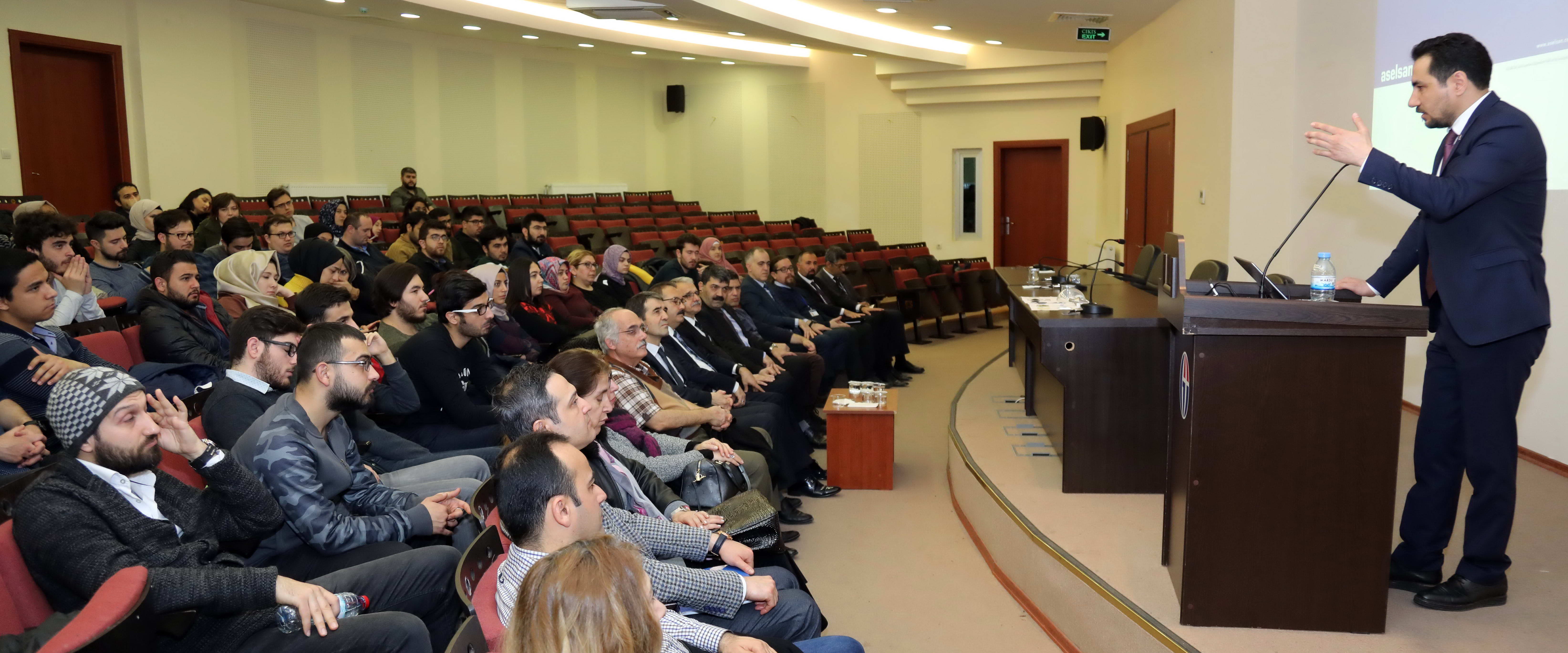 Rektör Gür’ün açılış konuşmasının ardından kısa adı ASELSAN olan Askeri Elektronik Sanayi’nin kıdemli mühendisleri Mustafa Erbudak, Veysel Şahin, Devrim Anıl, Tolga Ziya Sender, Alp Eren Sinan Özkan ve Ramazan Koç tarafından kurumun misyon ve vizyonu, üniversitelerle olan işbirlikleri; AR-GE çalışmaları gibi konularda öğrencilere yönelik bilgilendirmeye geçildi. Konuşmalarında, ASELSAN’ın kuruluşundaki milli amacın küresel pazarda paydaşları için yarattığı değerler ile sürdürülebilir büyümesini koruyan, rekabet gücü ile tercih edilen, güven duyulan, çevreye ve insana duyarlı bir teknoloji firması olmak amacı taşıdığını vurguladı. ASELSAN’ın elektronik teknolojileri ve sistem entegrasyonu alanında; Türk Silahlı Kuvvetleri başta olmak üzere, yurt içi ve dışındaki müşterilerine katma değeri yüksek, yenilikçi ve güvenilir ürün ve çözümler sunmak ve Türkiye’nin teknolojik alanda dışa bağımlılığını azaltıp, küresel hedeflerine marka bilinirliğini artırarak ulaşan, halkına gurur veren bir savunma şirketi olmak amacı taşıdığını belirten yetkililer, “Bu amaçla askeri haberleşme sistemleri, kamu güvenliği haberleşme sistemleri, uzay teknolojileri, kripto ve bilgi güvenliği sistemleri, elektro optik sistemler, insansız sistemler, silah sistemleri ve elektronik harp sistemlerinin de aralarında bulunduğu çok sayıda sistem üzerinde çalışmalarımız bulunuyor” dedi.