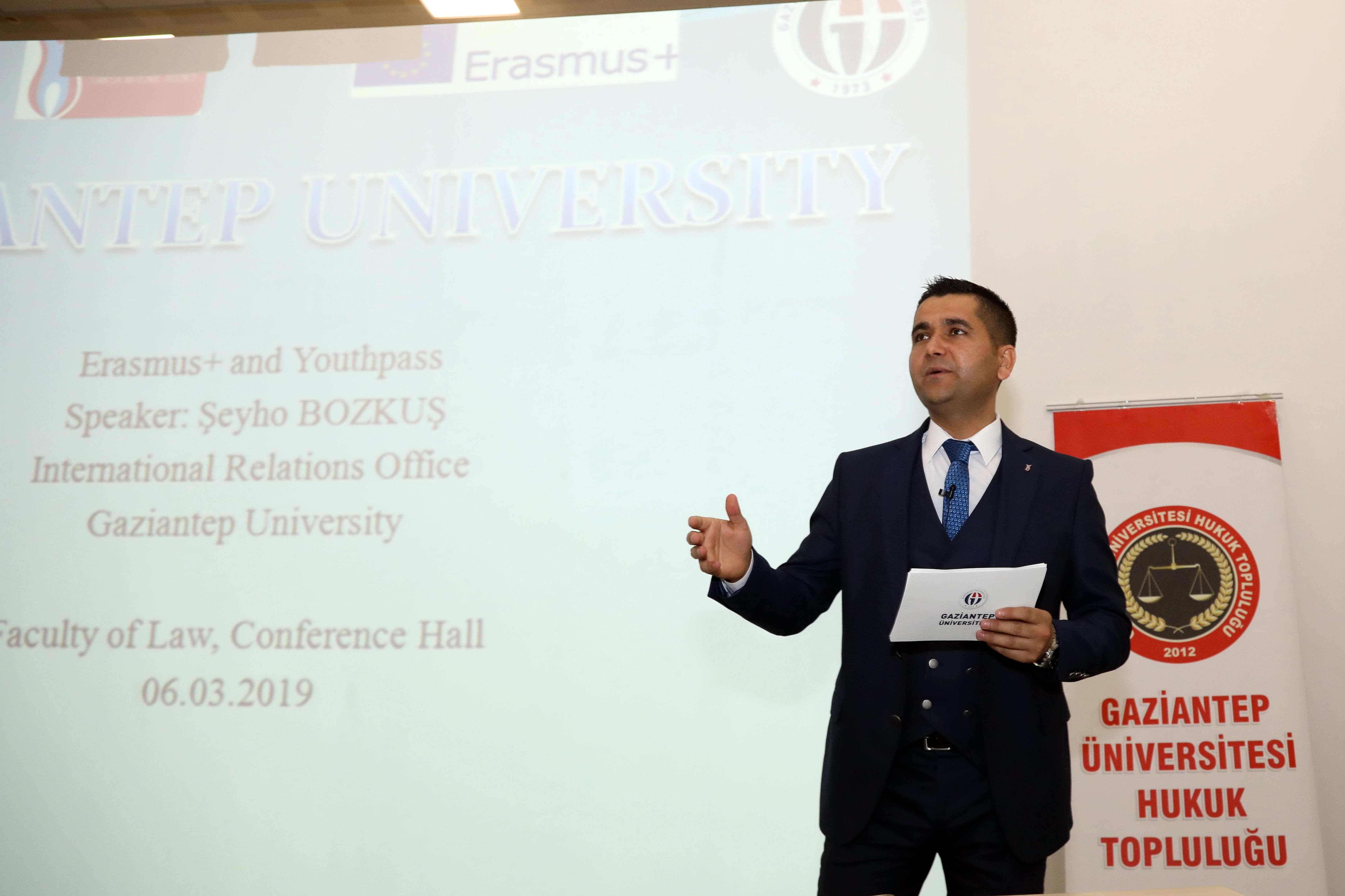 Gaziantep Üniversitesi(GAÜN) Hukuk Topluluğuna üye öğrencilerin yazdığı, Dışişleri Bakanlığı Avrupa Birliği Eğitim ve Gençlik Projeleri Merkezi Başkanlığı tarafından onaylanan “Bir Usta Bin Usta” isimli Gençlik Değişimi projesi kapsamında GAÜN Uluslararası İlişkiler Ofisi Personellerinden Şeyho Bozkuş tarafından ERASMUS+ VE YOUTHPASS sunumu yapıldı.