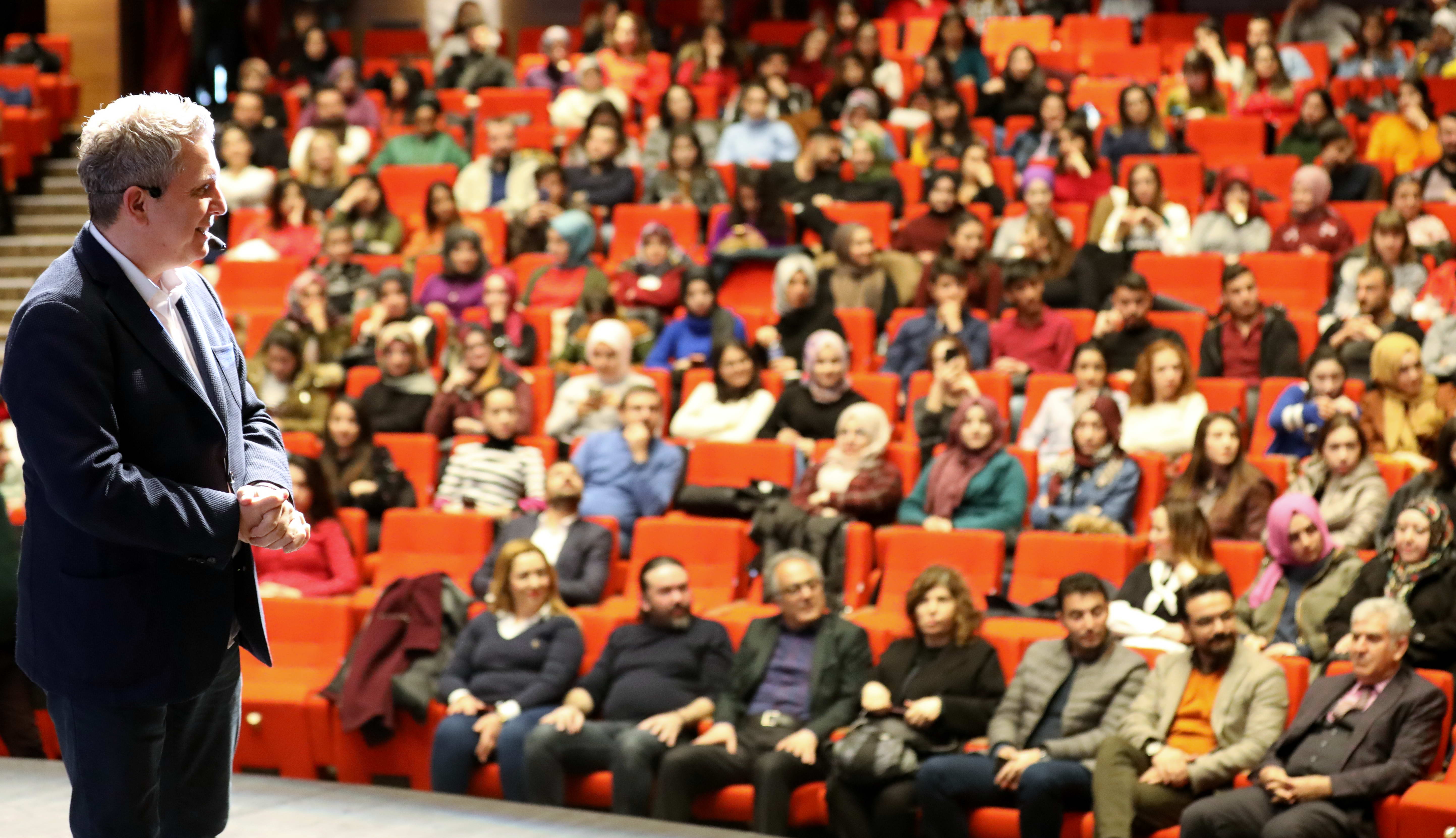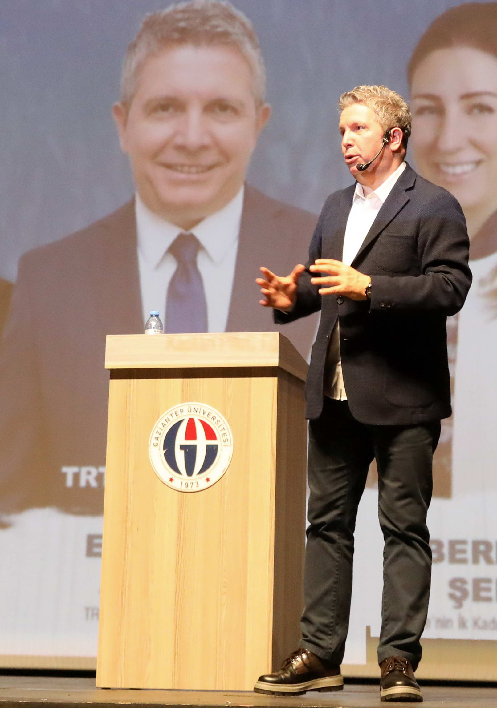 GAÜN öğrencileri ile bir araya gelerek mesleki tecrübelerini, gözlemlerini anlatan ve öğrencilere yaşama ve geleceğe dair önerilerde bulunan TRT Spikeri Arıkan, dünyada en değerli şeyin fikir olduğunu belirterek, “Hayatımız boyunca, bizden öncekilerden daha önce yaşayamayacağımız tek şey deneyim. Bizden öncekilerden daha akıllı olabiliriz. Ama, daha deneyimli olamıyoruz. İnsan, hayatının en renkli kararlarını 15 ile 30 yaş arasındaki zaman diliminde verir. Yani 15 ile 30 yaş arasında kendimize ne kadar yatırım yapabilirsek, kendimizi ne kadar geliştirebilirsek ondan sonraki yaklaşık 45 ile 50 yıl ona göre geçiririz. Bizi mutlu edecek bir işimiz yoksa hayatınız çok iyi geçmez” dedi.