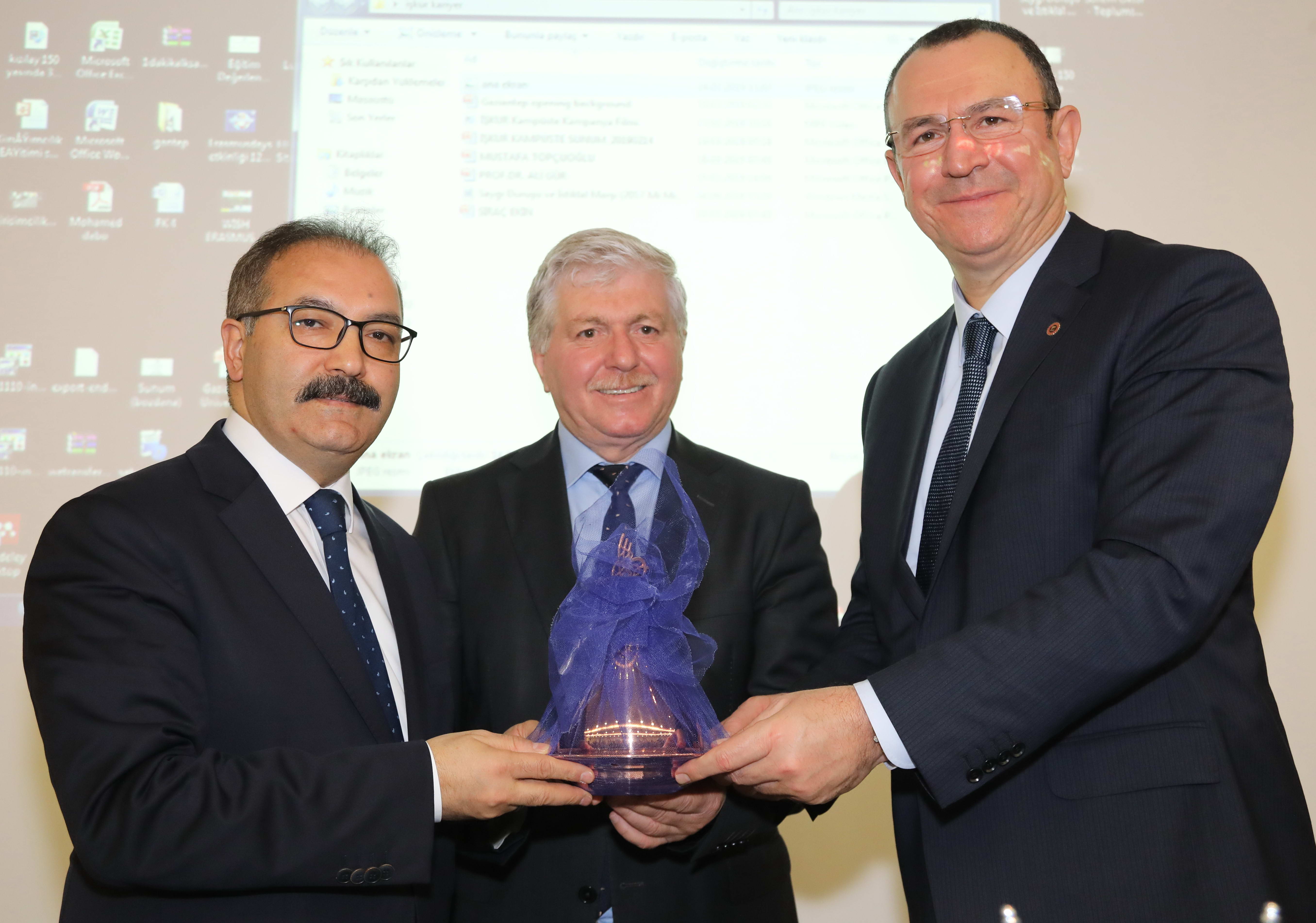 GAÜN Mühendislik Fakültesi’ndeki etkinliğin moderatörlüğünü yapan Rektör Prof. Dr. Ali Gür, Gaziantep’in gerek ihracat, gerek girişimciliğiyle Türkiye ekonomisine yön veren bir il olduğunu vurgularken, “Sayın Mustafa Topçuoğlu’nun Yönetim Kurulu Başkanı olduğu GÜLSAN Holding, Türkiye’nin ilk 500’e giren önemli firmalarından birisi. Bunun yanı sıra sosyal sorumluluğuyla bilinen girişimci bir şirketin yönetim kurlu başkanlığının yanında, OSB’nin de başkanlığını yürüten Sayın Mustafa Topçuoğlu’nu aramızda görmekten son derece mutluyuz. Ayrıca, diğer konuğumuz İŞKUR Müdürü Sıraç Ekin Bey de, öğrencilerimizin kariyer planlamasının yanı sıra, istihdamına yönelik birçok projenin yaşama geçirilmesi için üniversitemizle yakın ilişkiler içinde olan bir arkadaşımız” dedi.