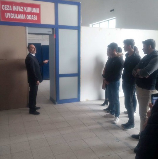 Hukuk Bölümü Öğretim Elemanları Ali Balkan ve Ali Altunbaş tarafından organize edilen gezide, Eğitim Merkezi Başkanı Cumhuriyet Savcısı Bülent Delibalta ve Şube Müdürü Dursun Mülazımoğlu tarafından öğrencilere Ceza İnfaz Kurumlarının tanıtımı ve tarihsel gelişimiyle ilgili sunum yapıldı. Daha sonra Eğitim Merkezi Kampüsü gezdirilerek, faaliyetleri tanıtıldı. Öğrencilere Ceza İnfaz Kurumu Uygulama Odası’nda meslek hayatında görev yaparken dikkat edilecek hususlarla ilgili uygulamalı eğitim verildi. Öğrenciler sınıflara dağıtılarak yeni memurlarla ile birlikte derse girerek mesleki konularda eğitime alındı.