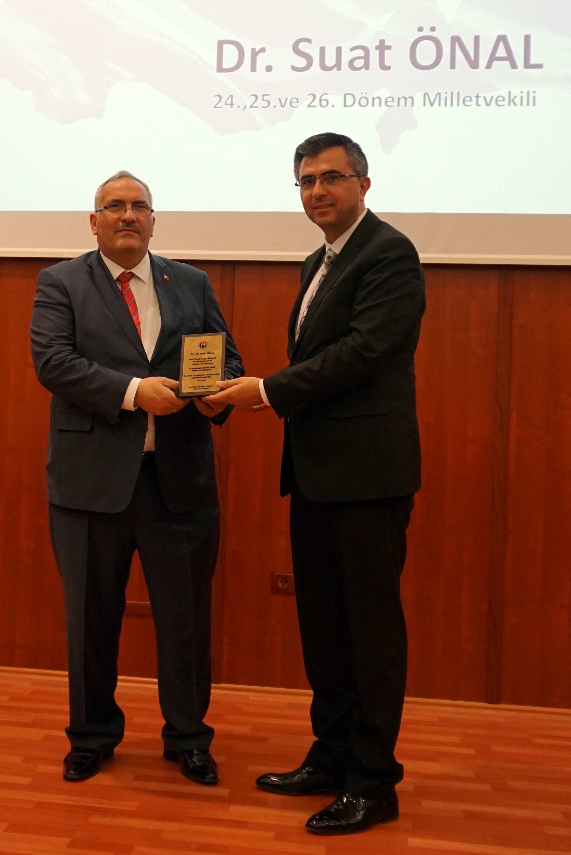 Milli İrade ve Demokrasi Derneği (MİDDER) Yöneticileri ve Üyelerinin yanı sıra Yüksekokul idari, akademik personeli ve öğrencilerinin katıldığı etkinlikte, Dr. Suat Önal’ın konuşması sonrasında GAÜN Naci Topçuoğlu Meslek Yüksekokulu Müdürü Doç. Dr. Necip Fazıl Yılmaz tarafından plaket takdim edildi.