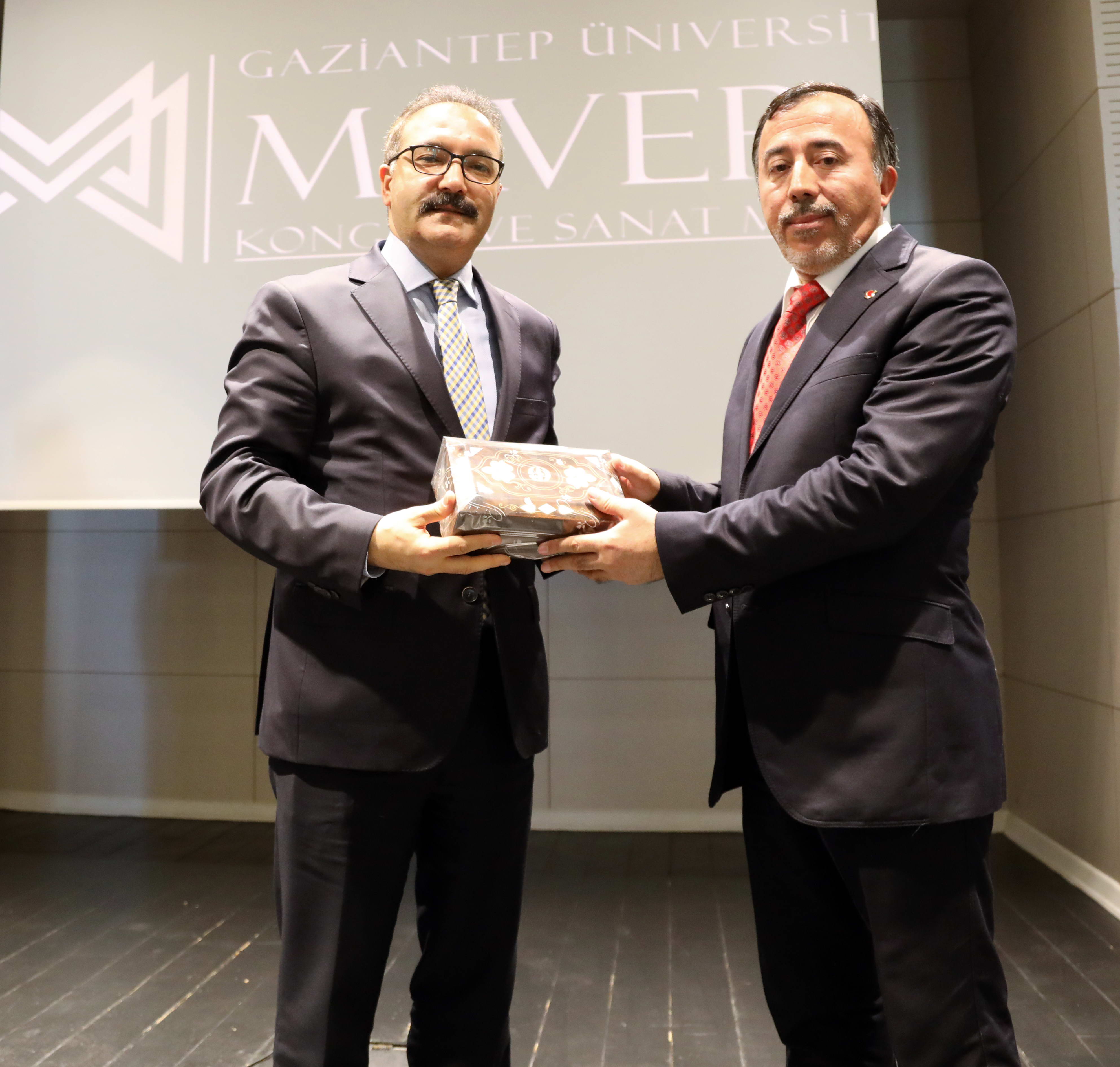Program sonunda GAÜN Rektörü Prof. Dr. Ali Gür konuşmacı Prof. Dr. Nurullah Çetin’e hediye takdim etti.