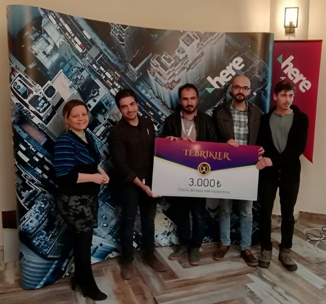 Hackathon’da birinci olan takım; acil hatlarda yapılan asılsız ihbarları önlemek, yangın, sağlık, asayiş, vb. sorunlarla ilgili birimlerin hızlı müdahale edebilmesini sağlayan bir yazılım programı geliştirmeyi başardılar. Lot kullanarak güvenlik kamerası ve trafik sinyalizasyon sistemini kontrol ederek gps konumlandırma servisleriyle çalışan internet girişimi gerçekleştirdi. Birinciliğe layık görülen takım Gaziantep’te faaliyet gösteren Turuçgil Teknoloji firması oldu. Turunçgil takımının Yazılım Geliştiricileri; Ümit Tunç, İbrahim Sanduvaç, Mustafa Savun ve İbrahim Halil Çapa’nın ödüllerini HERE Firmasından Semra Memiş ve Gaziantep Üniversitesi öğrencilerinden oluşan Locial takımı verdi.
