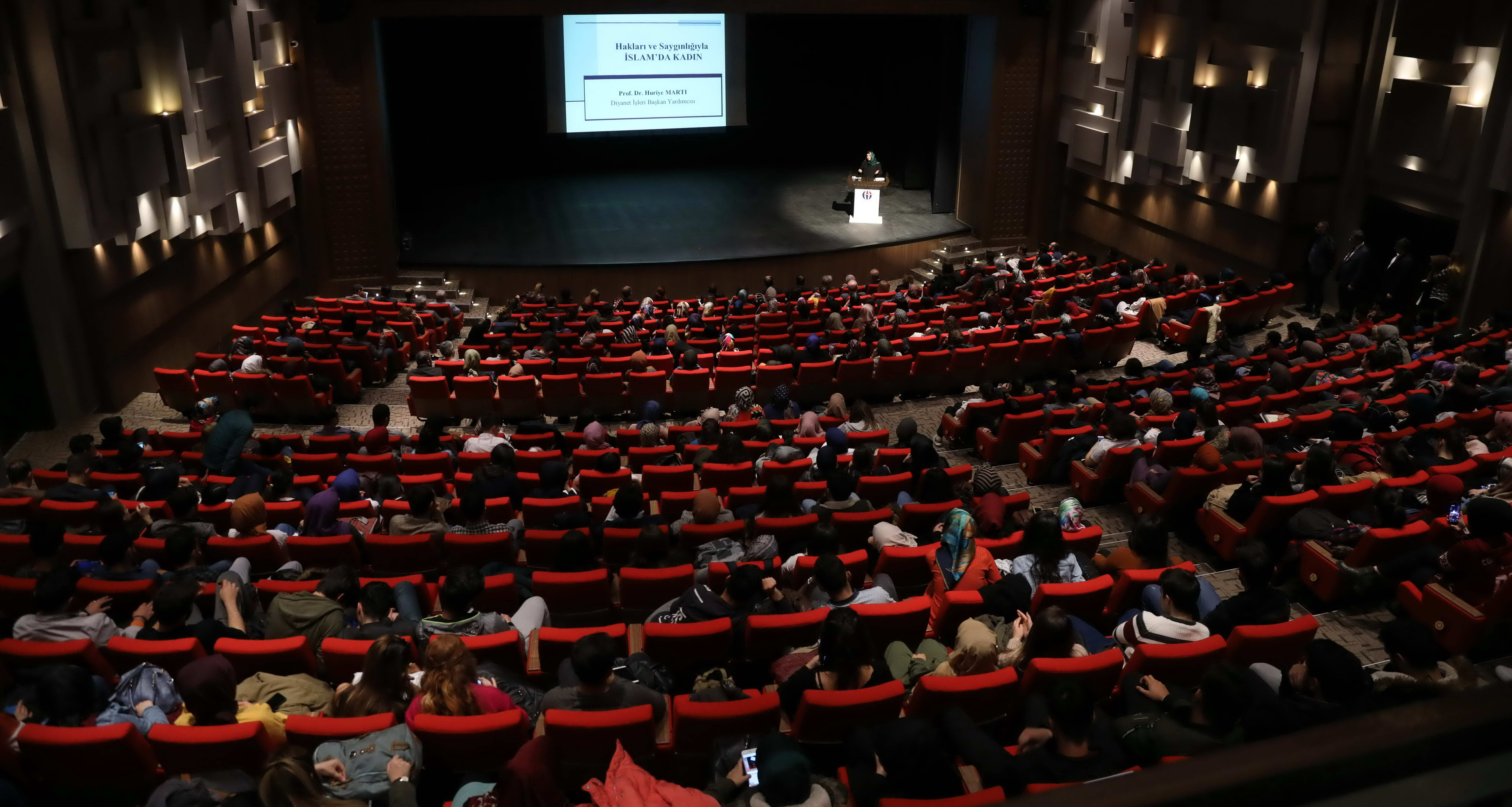 Diyanet İşleri Başkan Yardımcısı Prof. Dr. Huriye Martı tarafından Gaziantep Üniversitesi (GAÜN) Atatürk Kültür Sahnesi’nde “Hakları ve Saygınlığı ile İslam’da Kadın” konferansı verildi.