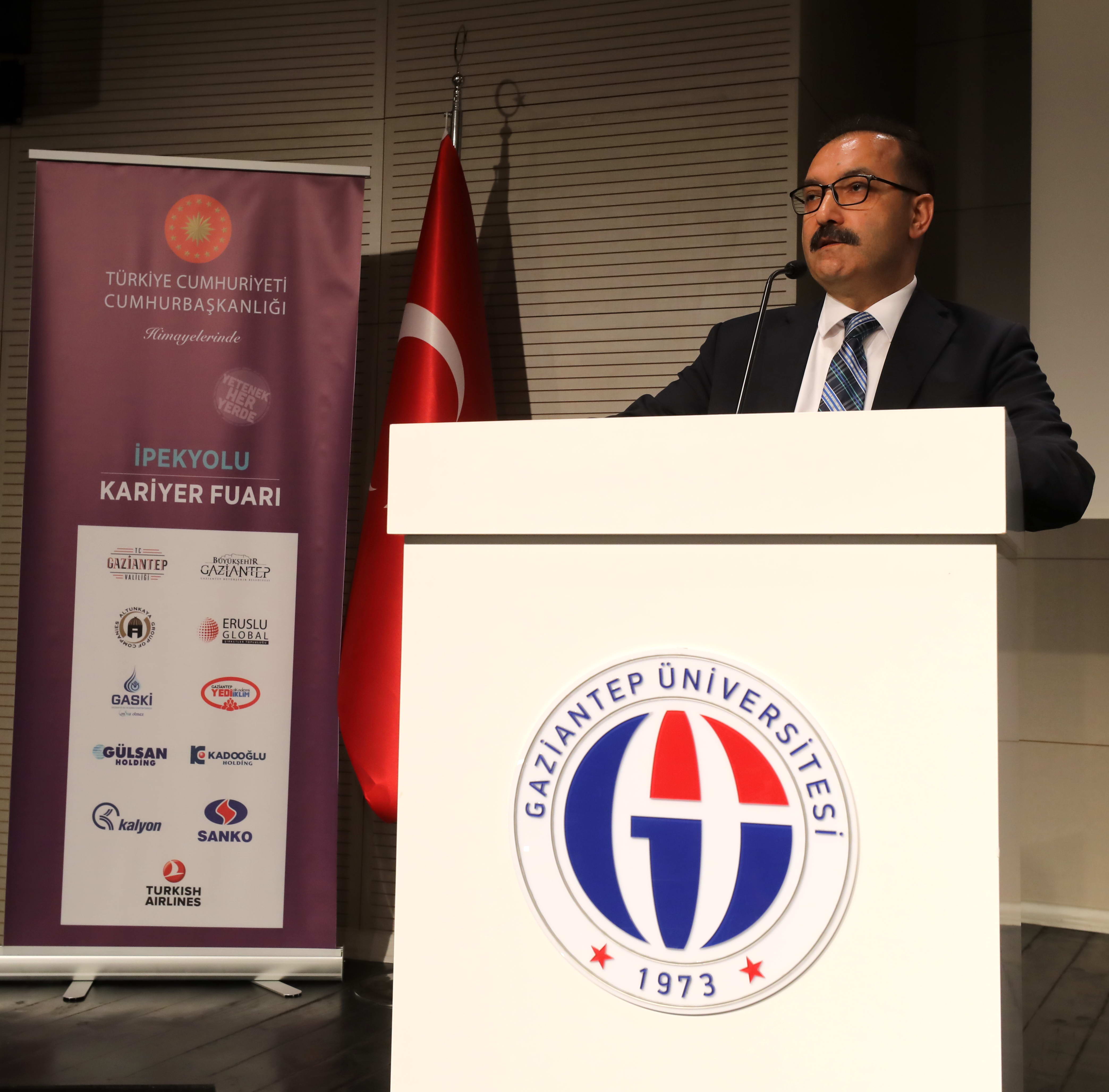 Kapanış töreninde konuşan GAÜN Rektörü Prof. Dr. Ali Gür, Kariyer Fuarı’nın özelikle tüm üniversiteleri birleştirdiğini, öğrenci ve firmaları aynı paydaş ortamda buluşturmayı sağladıkları için mutlu olduğunu belirterek başta organizasyonda görev alan öğrenciler olmak üzere tüm ilgililere teşekkür ederek şöyle dedi: “İki gündür durmadan, büyük bir heyecanla sahaların tozunu attıran sevgili öğrenciler, iyi ki varsınız. İki gündür sizin varlığınızla mutlu olduk. Firmalarımız mutlu oldular. Sahada özelikle firmalarla öğrencilerimizle buluşmasına aracılık ettiniz. Biz orkestra şefliğini yaptık. Asıl organizasyonu yapan sizlerdiniz. Matematiksel zekânın yanında, sosyal zekâ, girişimcilik, duygusal zeka, iletişim becerileri, ikna kabiliyeti ve organizasyon becerisini bu fuarda kazandınız. Cumhurbaşkanlığı himayelerinde düzenlenen bu fuara ev sahipliği yaptığımızdan dolayı çok mutluyum. Gaziantep’te bu kadar ihtişamlı, büyük katılımlı bir kariyer fuarının zeminini hazırlayıp, sorunsuz bir şekilde kapanış töreni yaptırdığınız için hepinize teşekkür ediyorum.”
