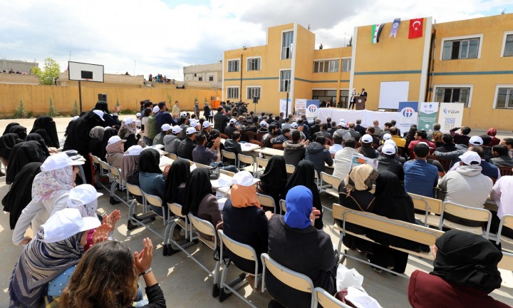 Dünya’nın 107 ülkesinden 4 bin 200’ün üzerinde uluslararası öğrenciye ev sahipliği yapan ve Türkiye’nin Türkçe, İngilizce ve Arapça olmak üzere 3 dilde eğitim yapan tek üniversitesi olan Gaziantep Üniversitesi, bu yıl Cumhurbaşkanı Recep Tayyip Erdoğan’ın talimatı ve bakanlar kurulu kararıyla Cerablus’a meslek yüksekokulu açmıştı. 5 Programında 150 Suriyeli öğrencinin eğitim gördüğü GAÜN Cerablus Meslek Yüksek Okulu, farklı bir heyecan ve coşkuya ev sahipliği yaptı. Bir yıl öncesine kadar kan ve barut kokusunun hakim olup, silah seslerinin kulakları sağır ettiği Cerablus, bu kez Uluslararası Öğrenci Buluşması’na ev sahipliği yaptı. GAÜN ve Milli Eğitim Bakanlığı işbirliğiyle kullanılır hale getirilen bir binana eğitimini sürdüren Meslek Yüksekokulu’nun bahçesindeki törene Gaziantep Üniversitesi’nin uluslararası öğrencileriyle, GAÜN üst yönetimi ve Suriye’nin yerel yöneticileri ve Cerabluslular katıldı.