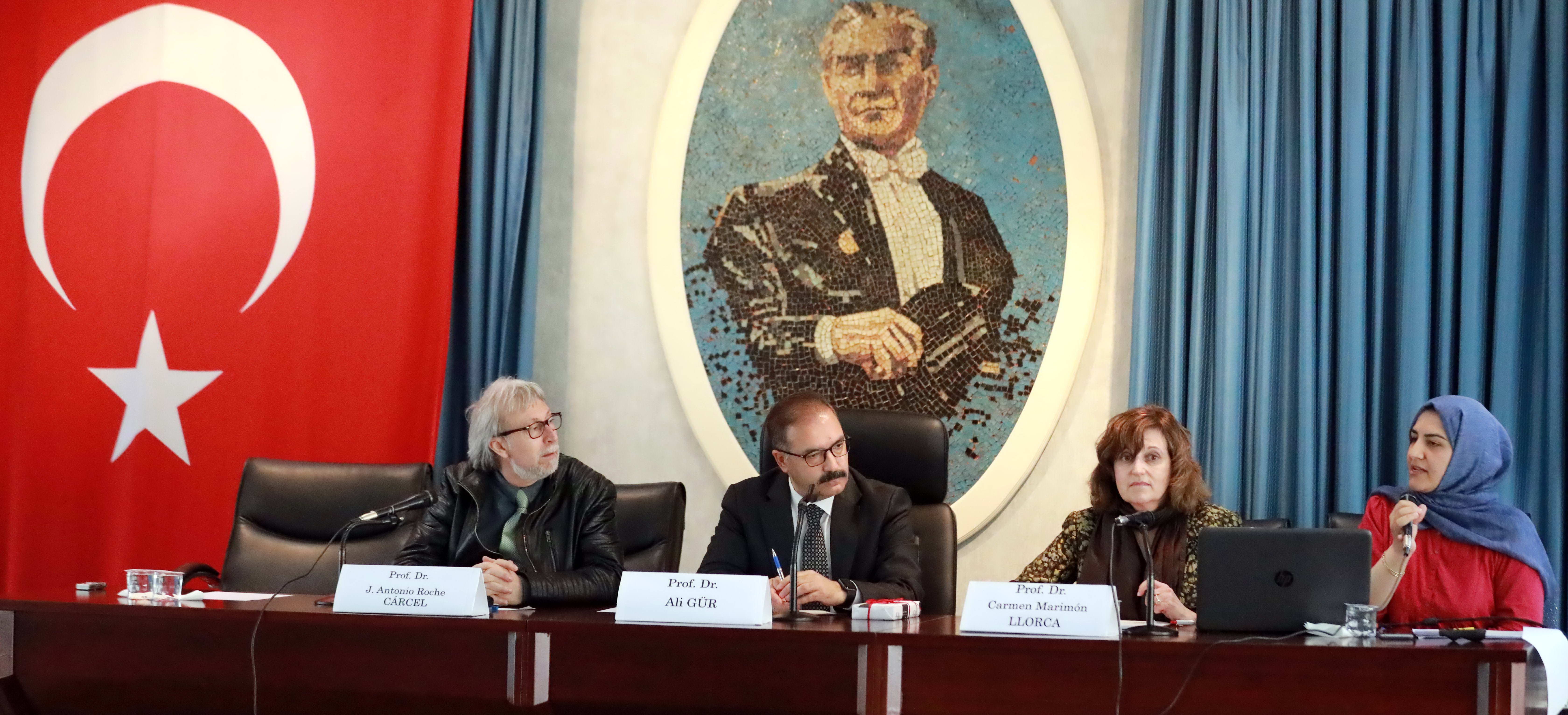 GAÜN Rektörü Prof. Dr. Ali Gür’ün moderatörlüğünü yaptığı panele; Carmen Marımon Llorca, ‘İspanyol Yazılı Basınında Bire Bakış’, Juan Antonıo Roche Carcel ‘İnşa Edilmiş Kimlikler: Literatürde Göç ve Göçmen’ konularına değindiler.