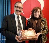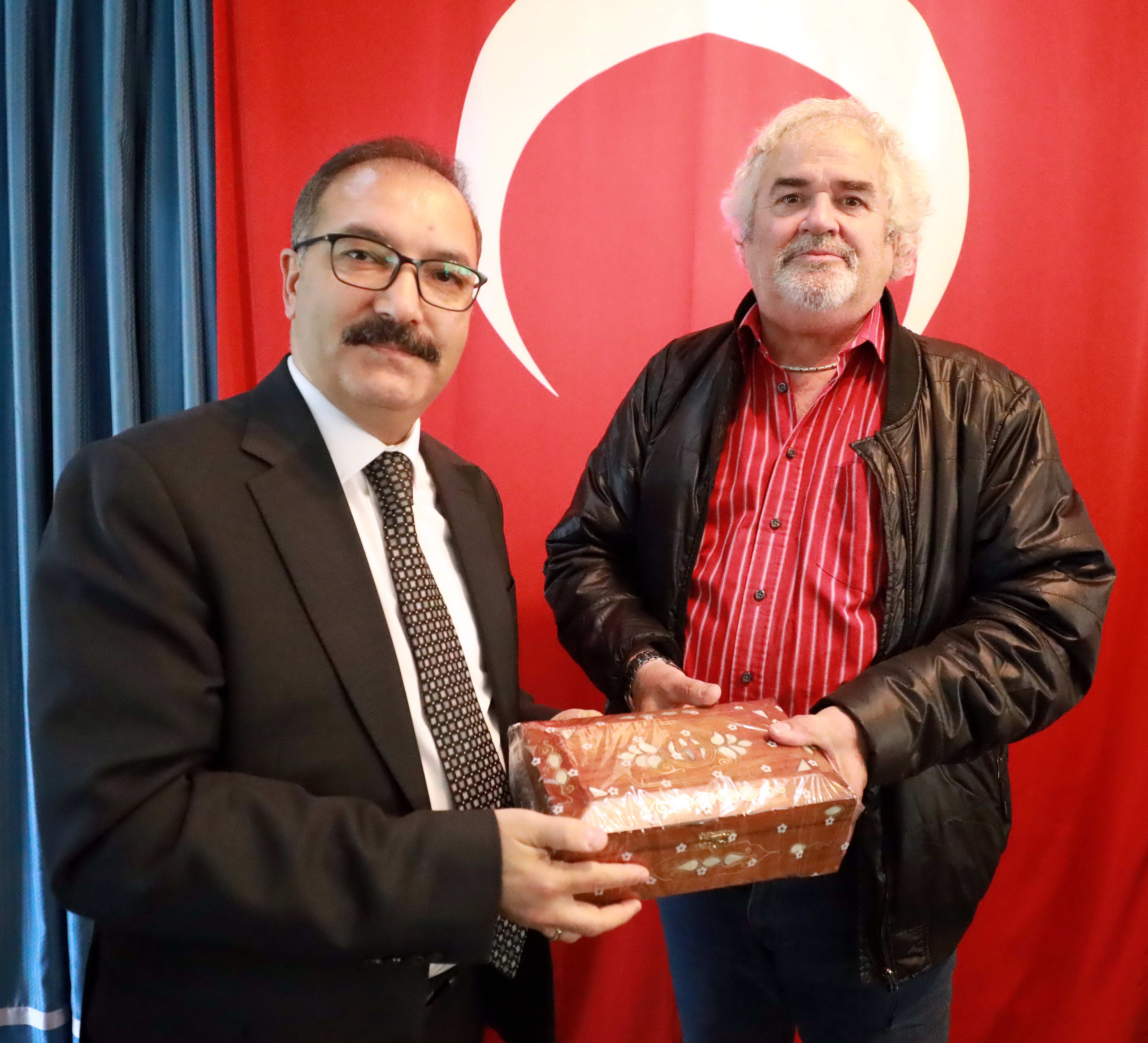 Konferanstan sonra GAÜN Rektörü Prof. Dr. Ali Gür tarafından konuşmacılara hediye takdim edildi.