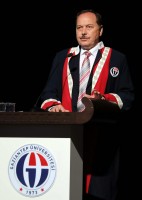 Hekimliğin kutsal bir meslek olduğunu belirten Tıp Fakültesi Dekanı Prof. Dr. Yusuf Zeki Çelen ise, tıp mesleğinin saygın kutsal ama çok da sor bir meslek dalı olduğunu belirtirken, “3 yıllık temel tıp eğitimini tamamlayan öğrencilerimizi başarılı bir şekilde yetiştiren hocalarımıza, onları bu günlere getiren ailelerine ve tıp öğrencisi olmanın sorumluluğunu yerine getiren öğrencilerime çok teşekkür ediyorum” dedi. Beyaz rengin sağlık, temizlik, dürüstlük, huzur ve güvenin simgesi olduğunu vurgulayan Prof. Dr. Çelen, “Ama beyazın en önemli özelliği onun en küçük bir lekeyi göstermesidir. Beyaz önlüğü giyen insan temiz ve dürüst, mesleğini seven bir hekim olmalıdır. Siz öğrencilerimizin beyaz önlüğün hakkını ömür boyu vereceğinize olan inancım tamdır” diye konuştu.