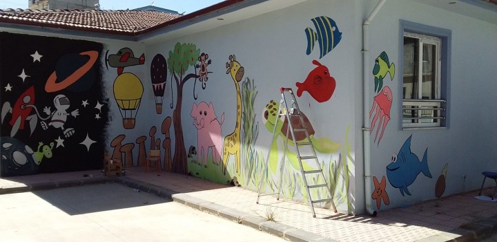 GAÜN GÜZEL SANATLAR FAKÜLTESİ ÖĞRENCİLERİNDEN OKUL BOYAMA ETKİNLİĞİ