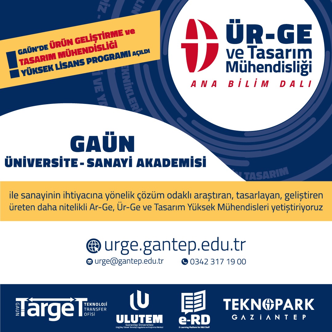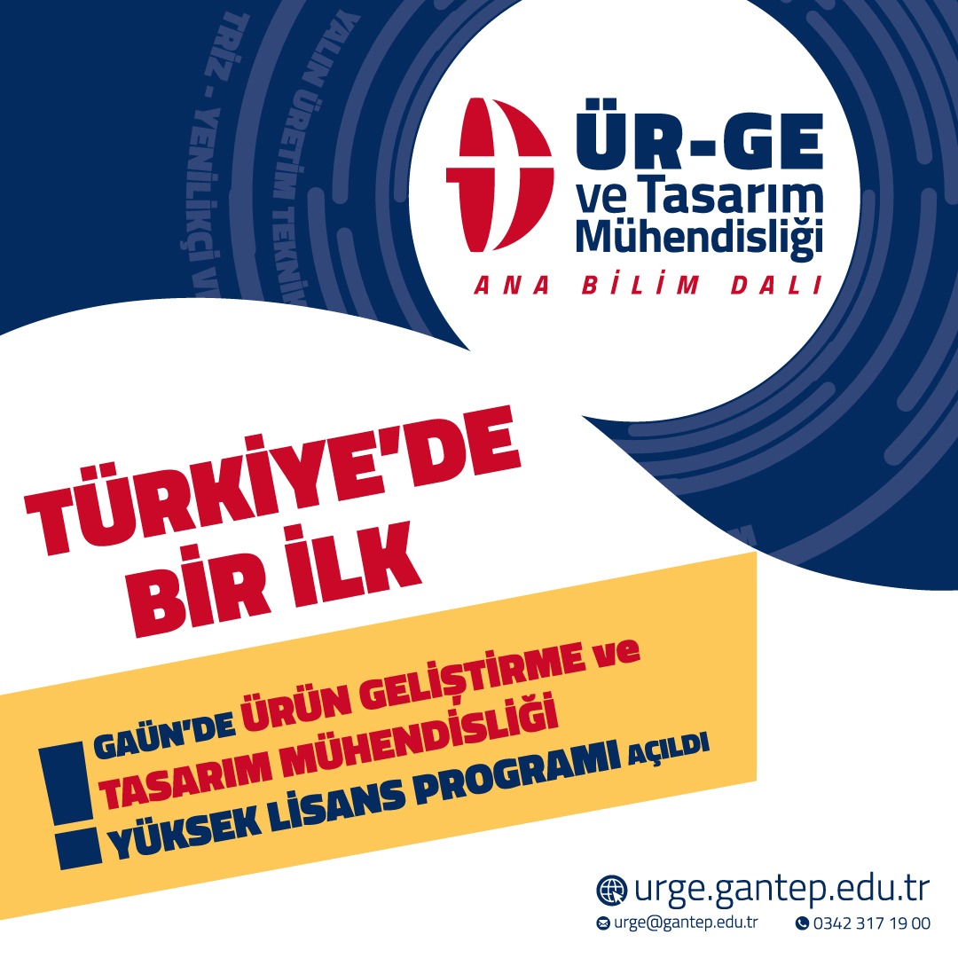 Uygulamaya koyduğu örnek projeleriyle Türkiye’de ilklere imza atan Gaziantep Üniversitesi, bu defa da Türkiye’nin ilk Ürün Geliştirme ve Tasarım Mühendisliği Yüksek Lisans Programı ile, bölgedeki ARGE/ÜRGE ve tasarım alanında kariyer yapmak isteyen insan kaynağının ihtiyaçlarına cevap verecek olan ÜR-GE ve Tasarım Mühendisliği Ana Bilim Dalı’nı kurdu.
