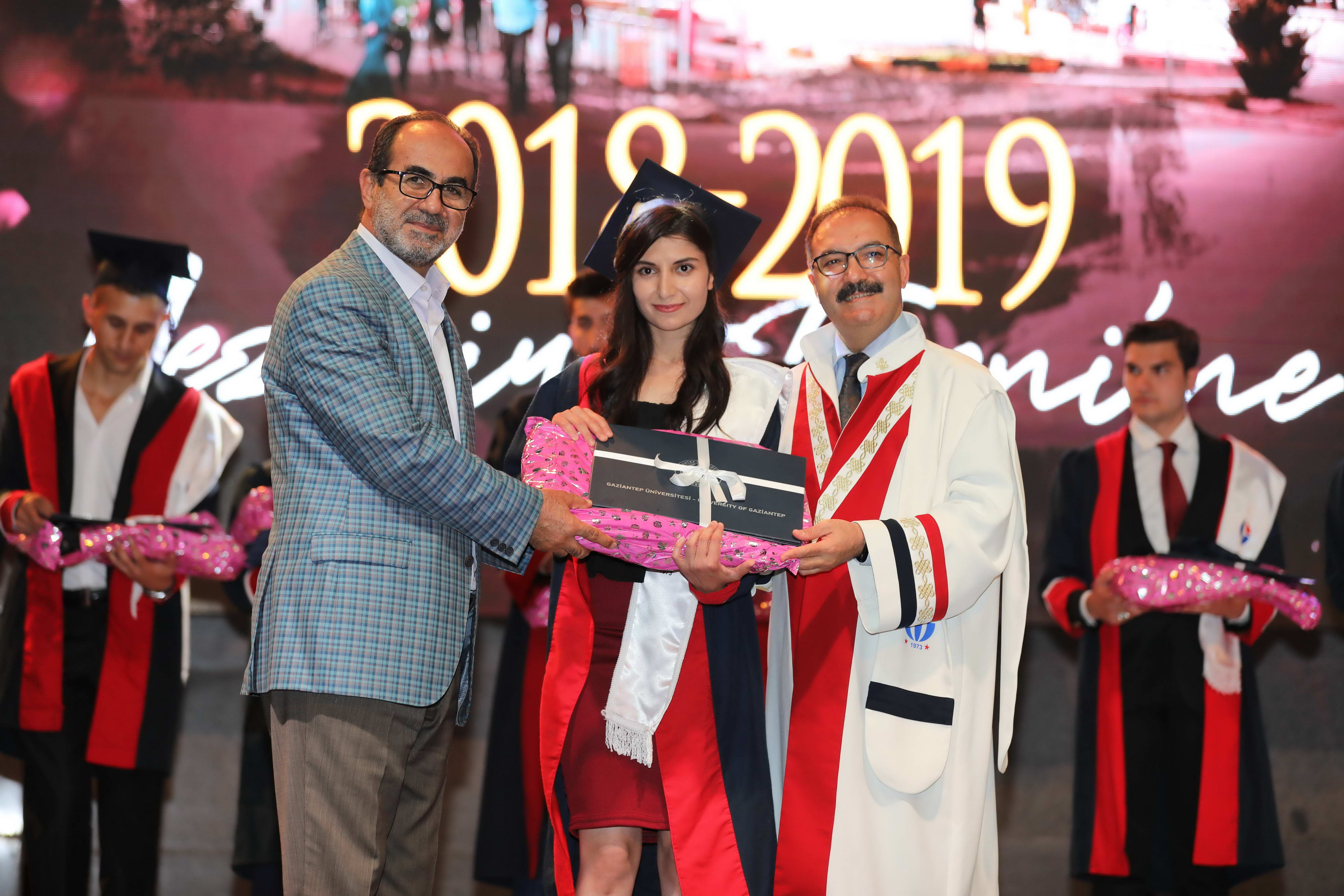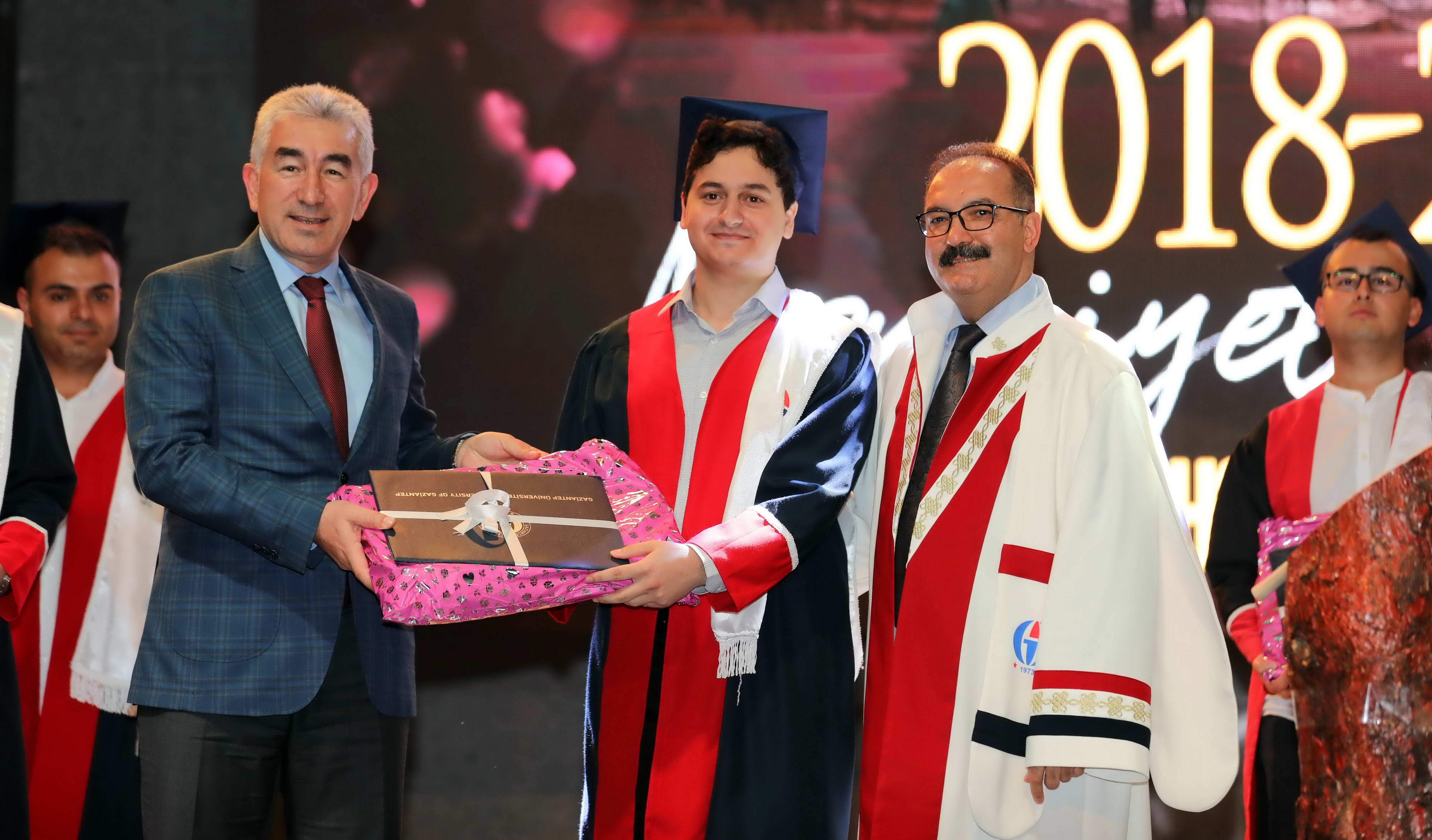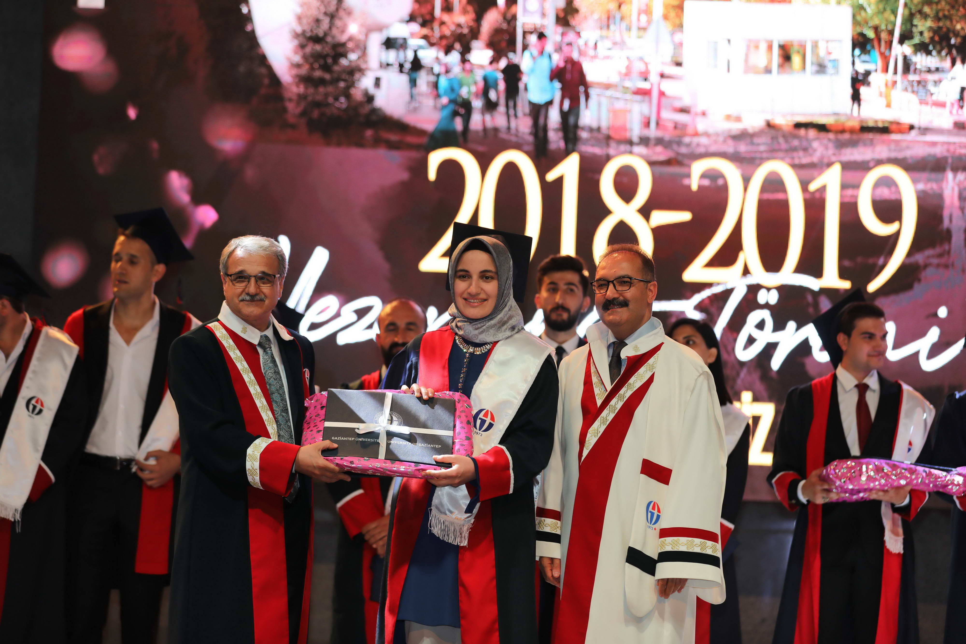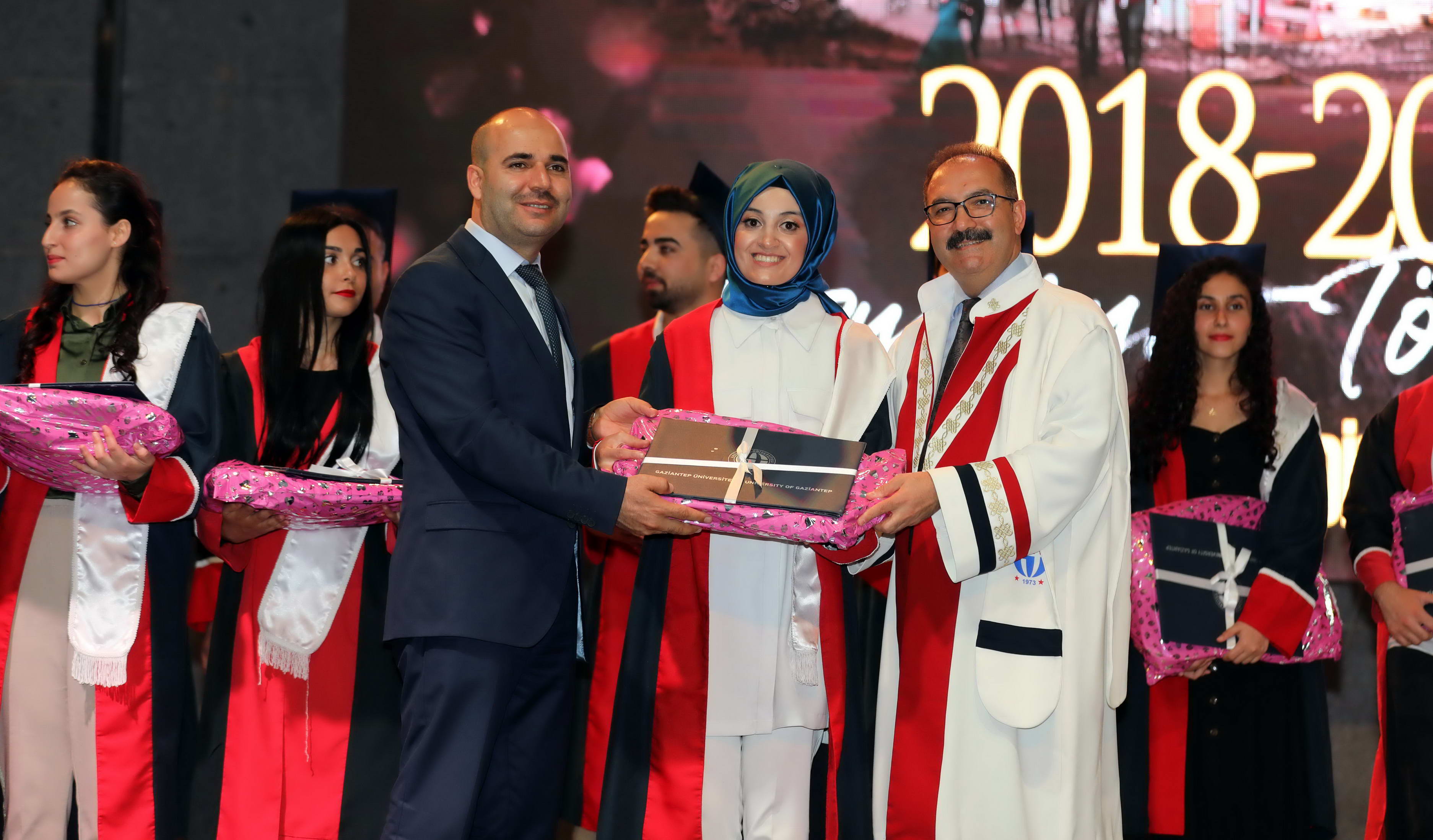 Mezun öğrencilerin Gaziantep Üniversitesi andını okuması sonrasında diploma ve hediyeleri Gaziantep Valisi Davut Gül, Gaziantep Milletvekilleri Sermet Atay ve Ali Muhittin Taşdoğan, Gaziantep Üniversitesi Rektörü Prof. Dr. Ali Gür, Gaziantep Büyükşehir Belediye Başkan Vekili Yusuf Erdem Güzelbey, Oğuzeli Kaymakamı Batuhan Bingöl, İl Jandarma Komutanı J. Kd. Alb. Halil Uysal, Gaziantep İl Emniyet Müdürü Faruk Karaduman, Oğuzeli Belediye Başkanı Sait Kılıç, Gaziantep Üniversitesi Rektör Yardımcıları Prof. Dr. Metin Bedir, Prof. Dr. Şehmus Demir, Prof. Dr. Avni Gökalp ve GAÜN Genel Sekreteri Doç. Dr. Ayhan Doğan tarafından verildi.