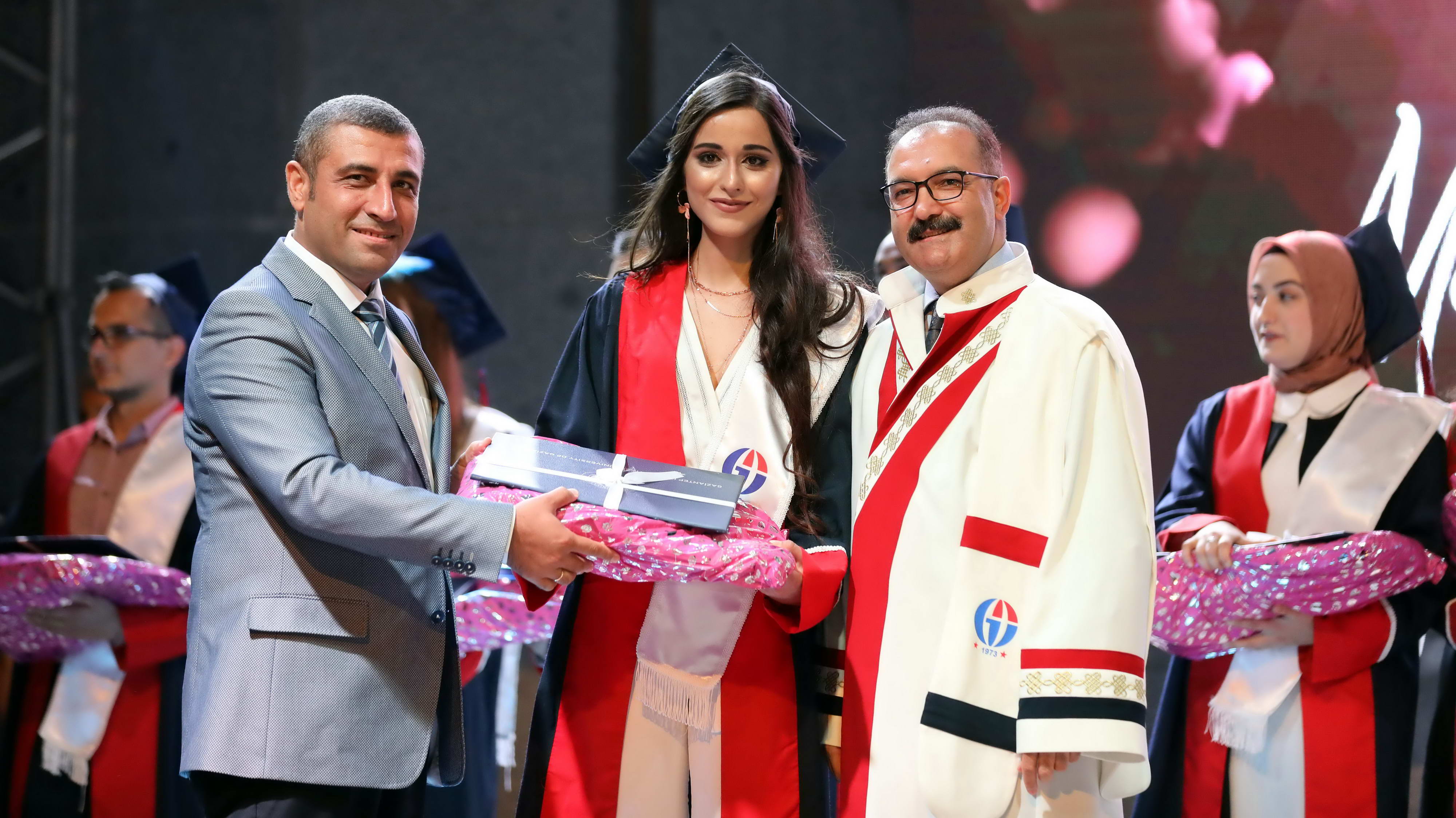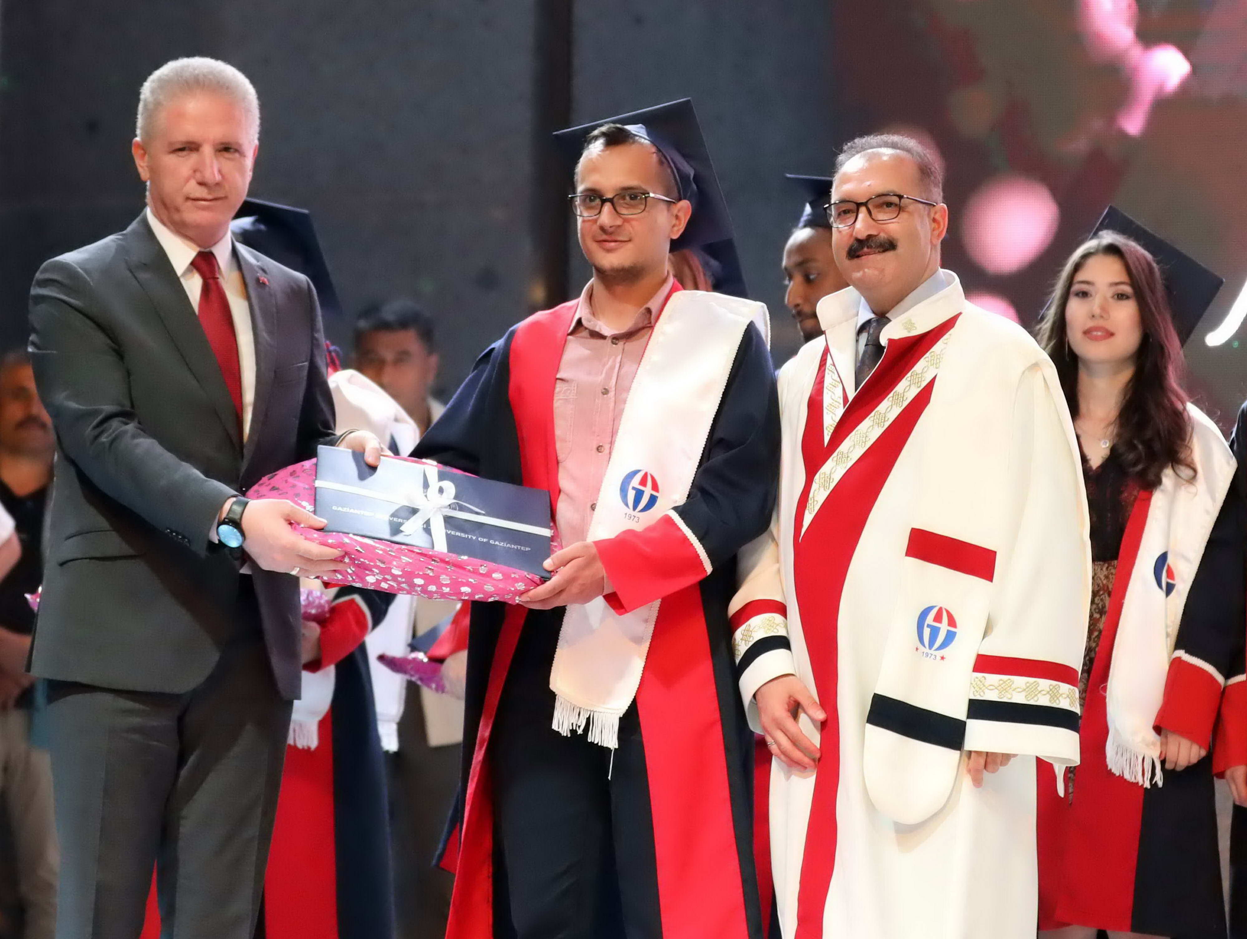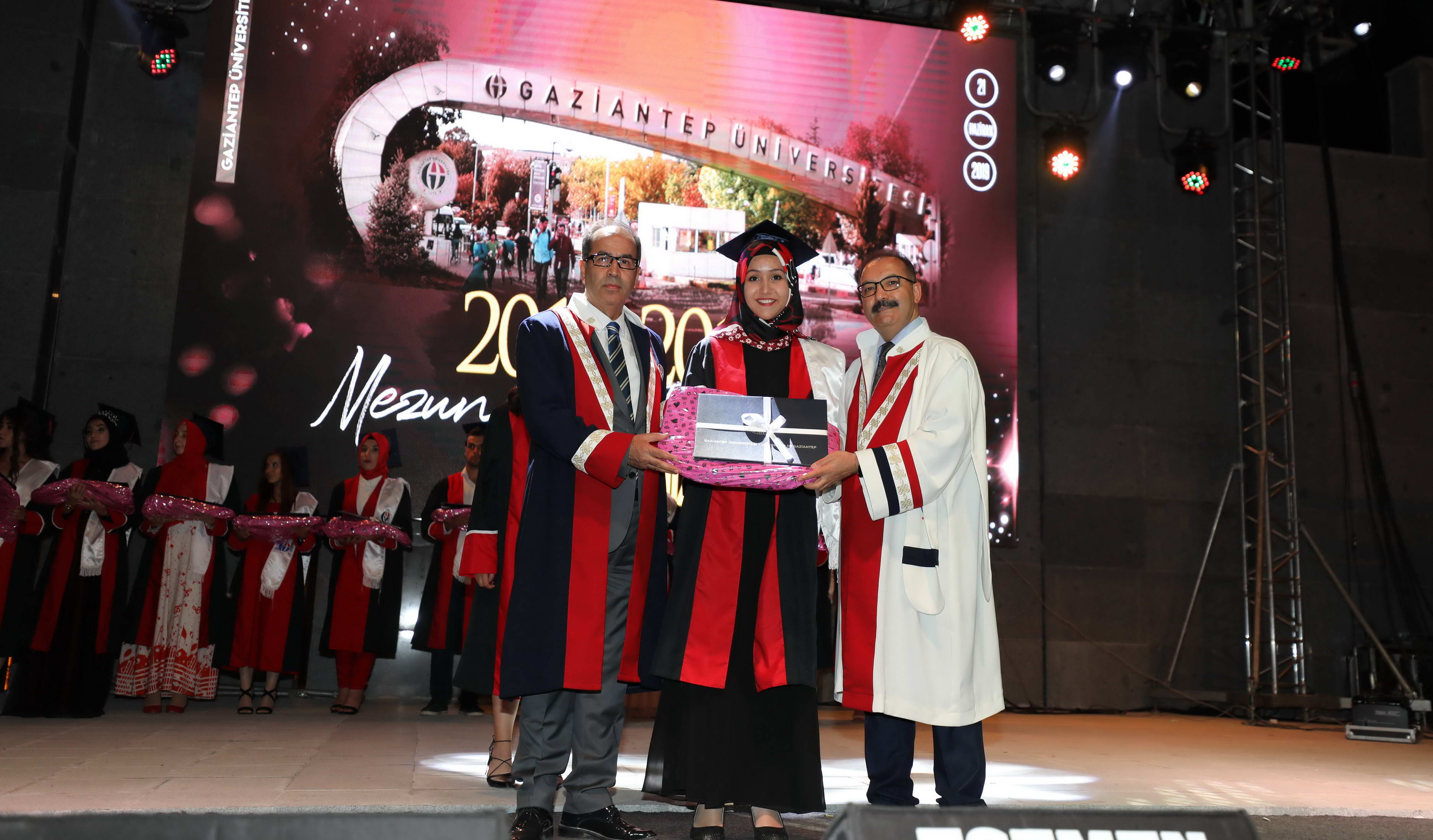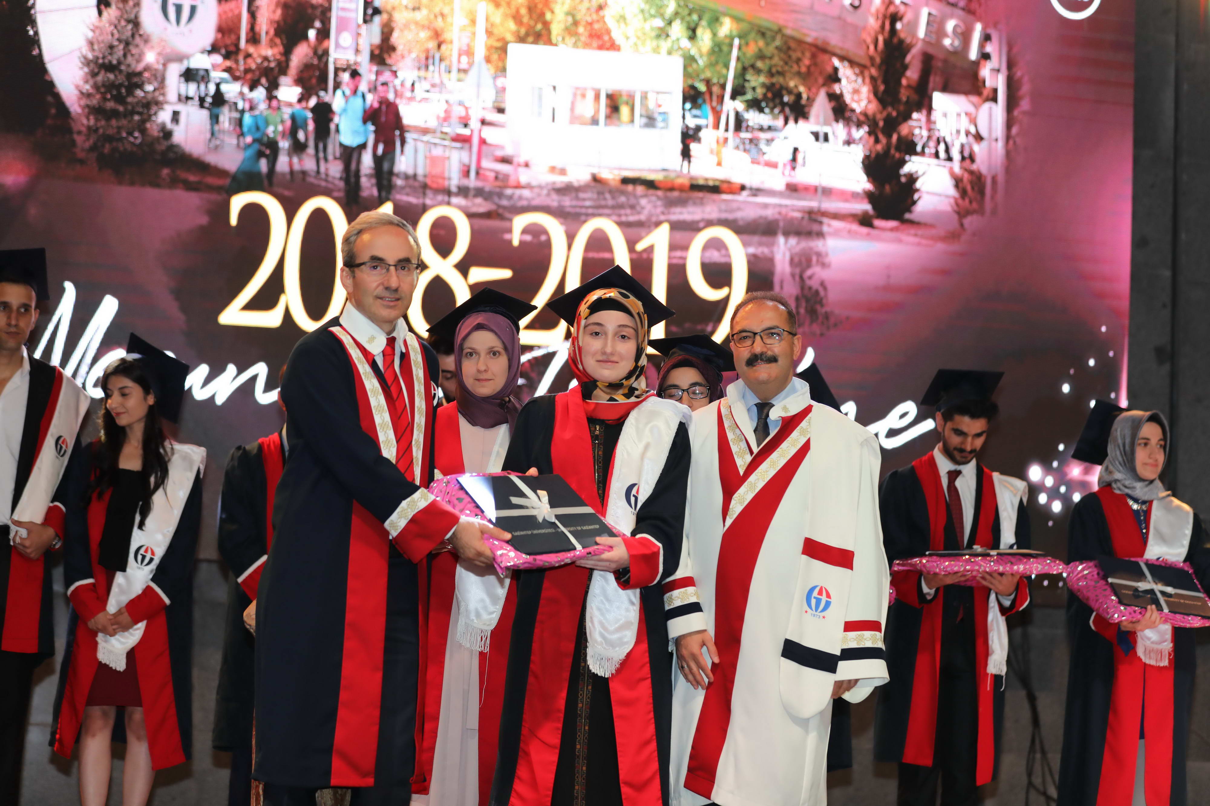 Mezun öğrencilerin Gaziantep Üniversitesi andını okuması sonrasında diploma ve hediyeleri Gaziantep Valisi Davut Gül, Gaziantep Milletvekilleri Sermet Atay ve Ali Muhittin Taşdoğan, Gaziantep Üniversitesi Rektörü Prof. Dr. Ali Gür, Gaziantep Büyükşehir Belediye Başkan Vekili Yusuf Erdem Güzelbey, Oğuzeli Kaymakamı Batuhan Bingöl, İl Jandarma Komutanı J. Kd. Alb. Halil Uysal, Gaziantep İl Emniyet Müdürü Faruk Karaduman, Oğuzeli Belediye Başkanı Sait Kılıç, Gaziantep Üniversitesi Rektör Yardımcıları Prof. Dr. Metin Bedir, Prof. Dr. Şehmus Demir, Prof. Dr. Avni Gökalp ve GAÜN Genel Sekreteri Doç. Dr. Ayhan Doğan tarafından verildi.