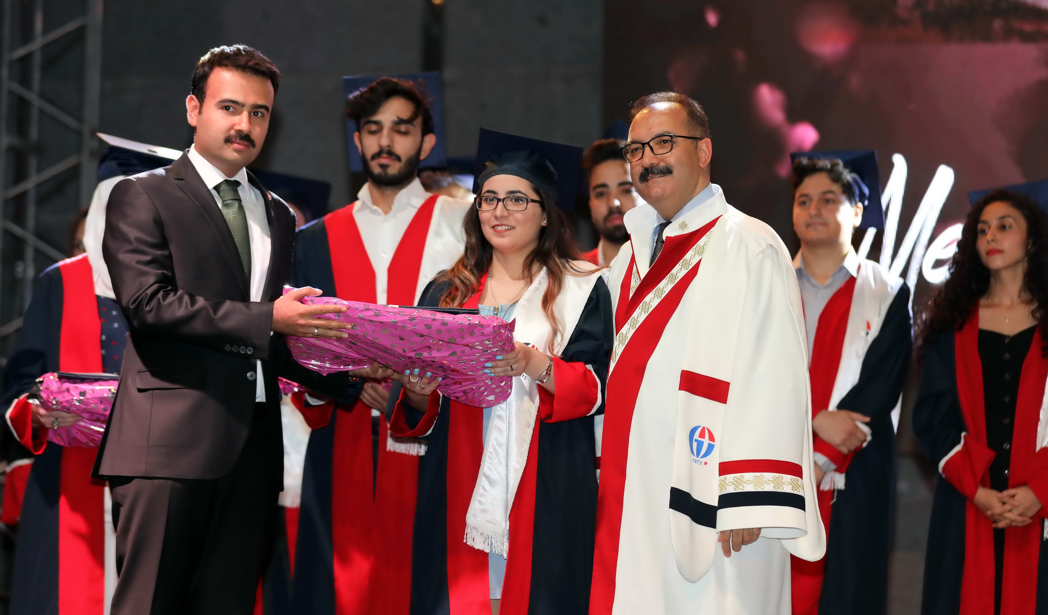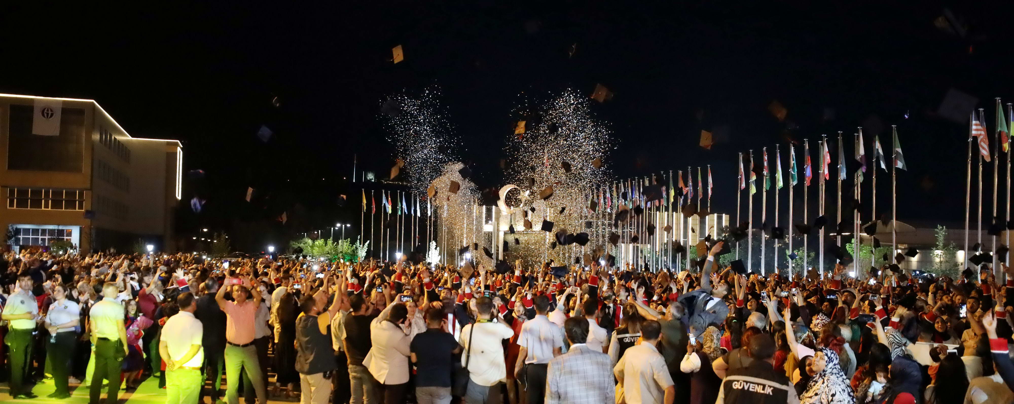 Mezuniyet töreni Mehter Marşı eşliğinde düzenlenen havai fişek gösterisi ve öğrencilerin hep birlikte kep atmalarıyla sona erdi.